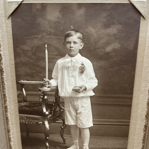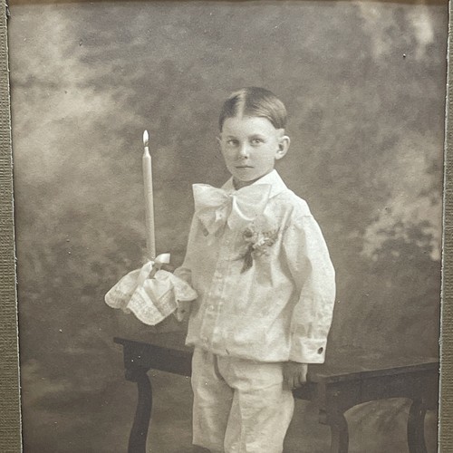 Paper is yellowing and beginning to show spotting due to age and storage. Picture depicts the same young child, holding a candle. Please see pictures for condition details and measurements.