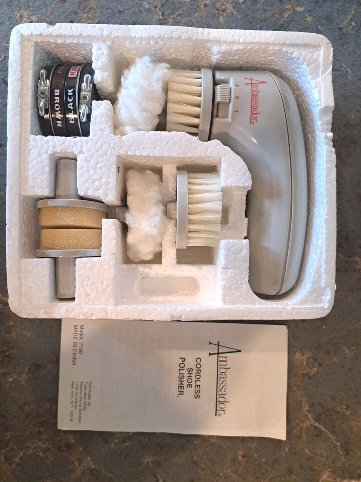 Vintage Ambassador Model 7100 Cordless Shoe Polisher. Brand new in original box.