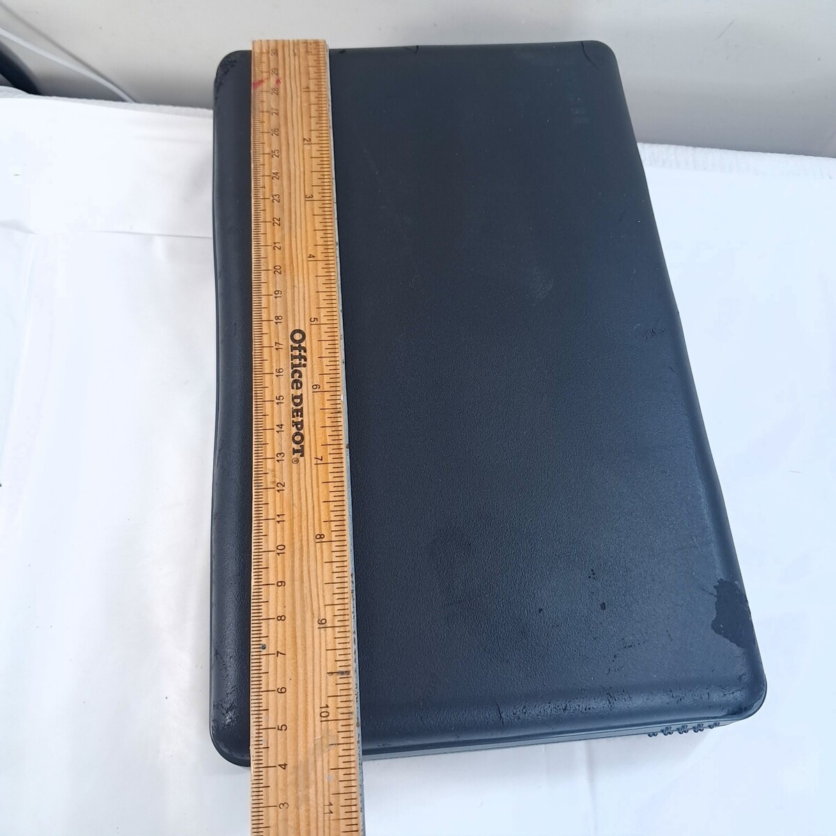 Foam outside. Accordion style inside. Holds 24 discs. Some cosmetic issues to the foam including cracks/missing chunks/general wear etc. See pics.