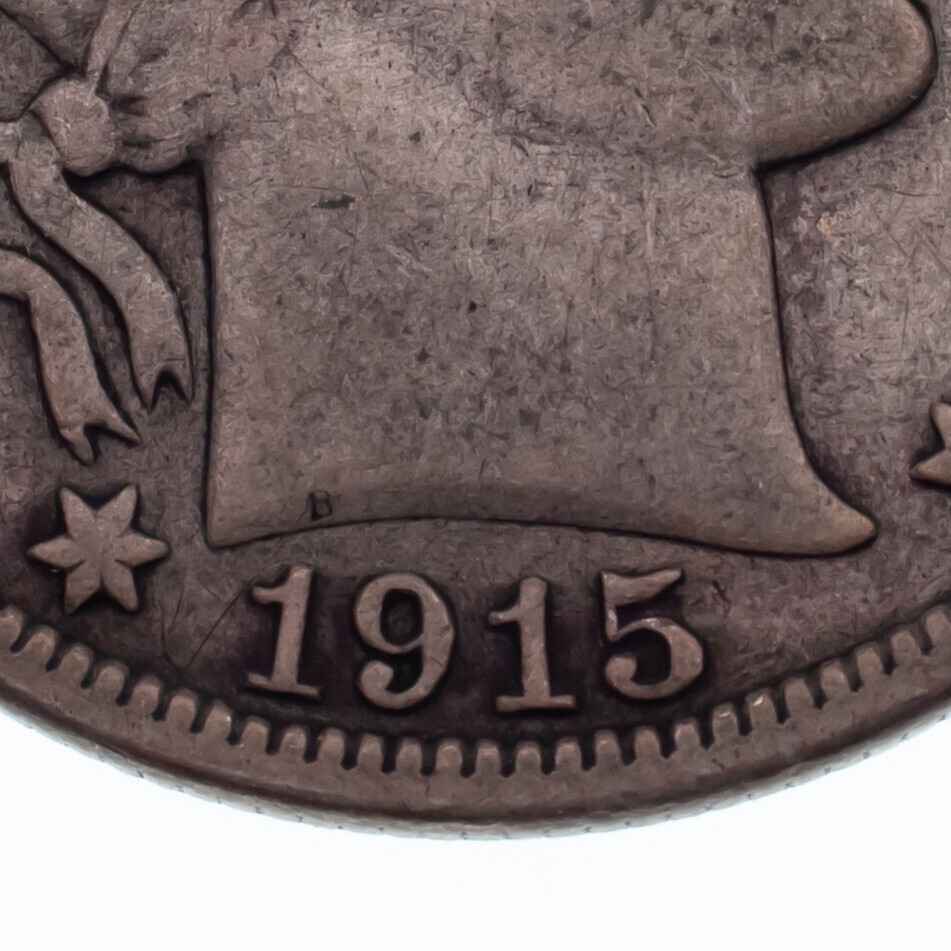 1915-S 50C Barber Half Dollar in Fine Condition, Light Gray Color, Full LIBERTY