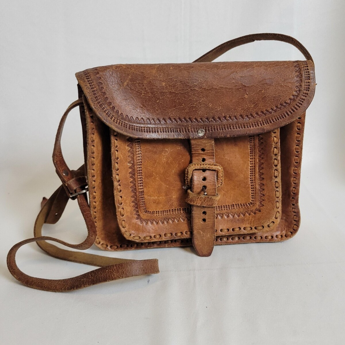 Vintage Purse Hand Tooled Leather Crossbody Bag Rustic Boho Western Distressed