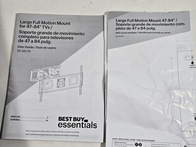 Best Buy Essentials TV Wall Mount Full Motion for 47–84" TV's Black BRACKET ONLY