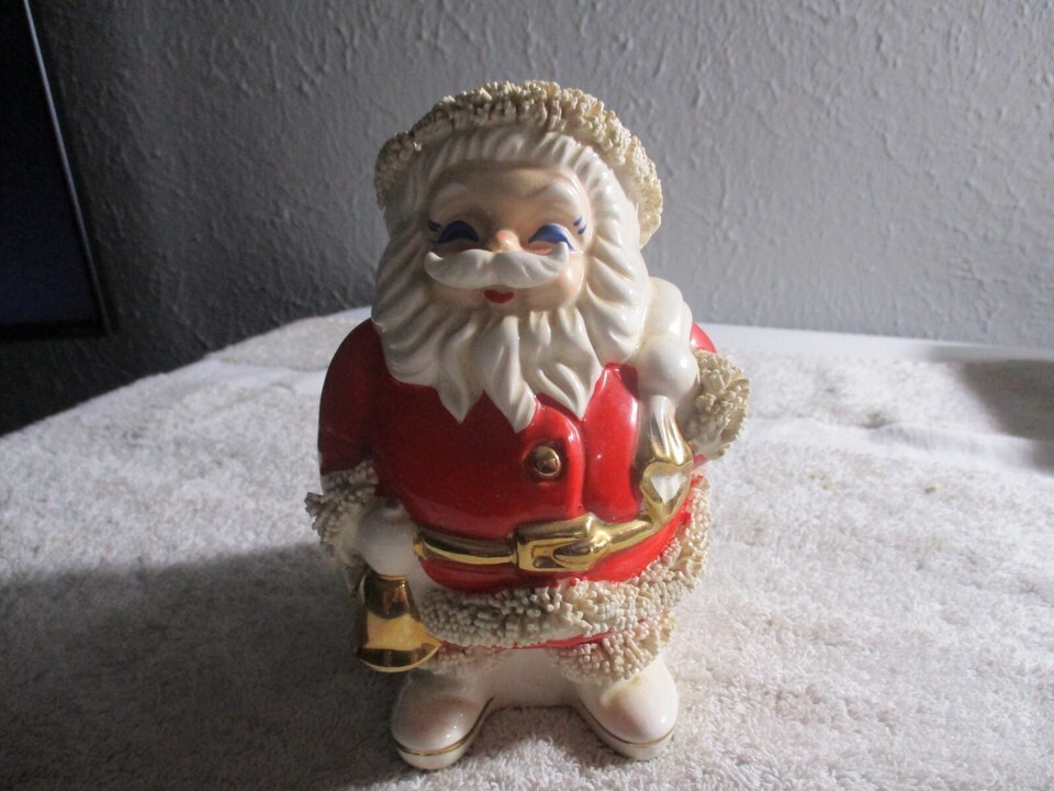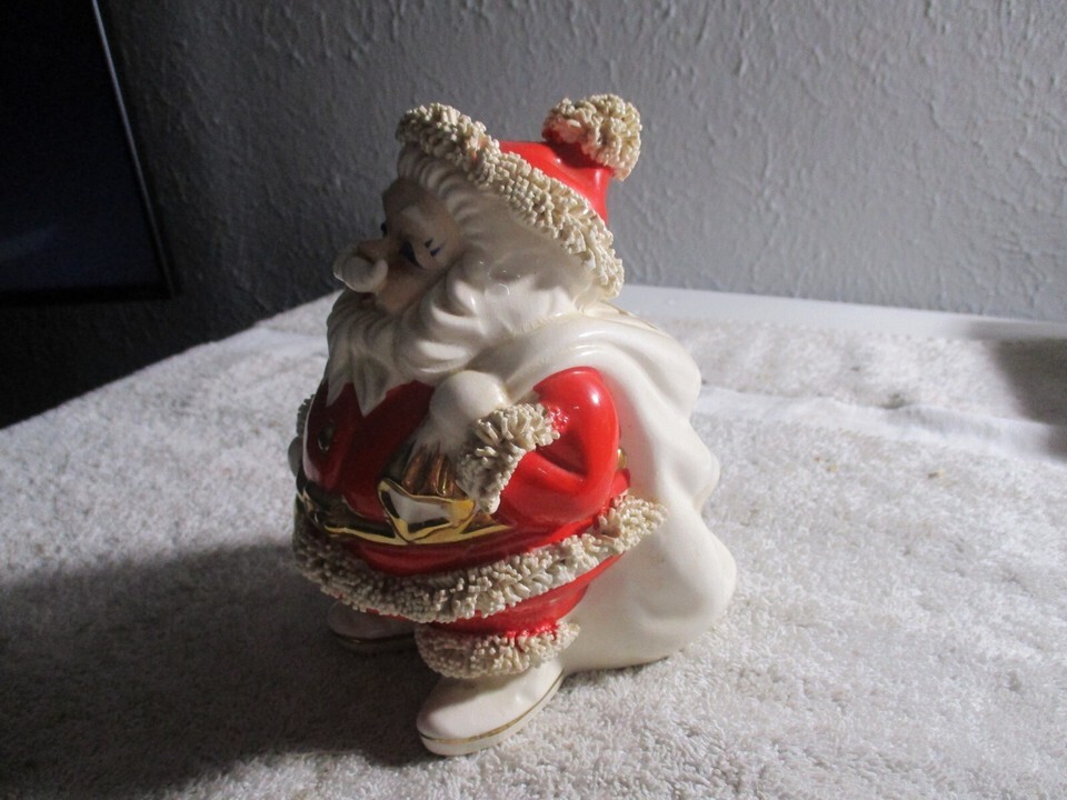 1950's Santal ceramic Christmas Santa Coin Bank Spaghetti Trim No Stopper VTG