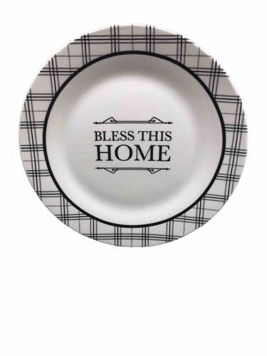 Add a touch of glamour to your dining table with this black and white plaid side/salad/desert plate. The vintage pattern and round shape make it a perfect fit for all occasions and themes. Made with high-quality ceramic, this plate is a must-have for any art deco lover.