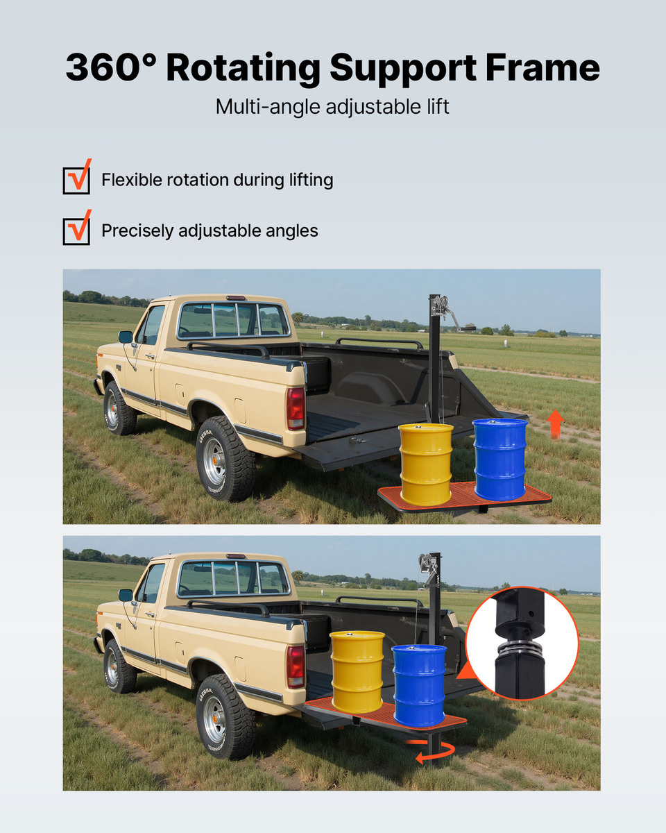 Flexible Adjustment: The support frame of the truck hitch game hoist rotates 360 effortlessly, allowing one person to place items on the frame without moving the truck