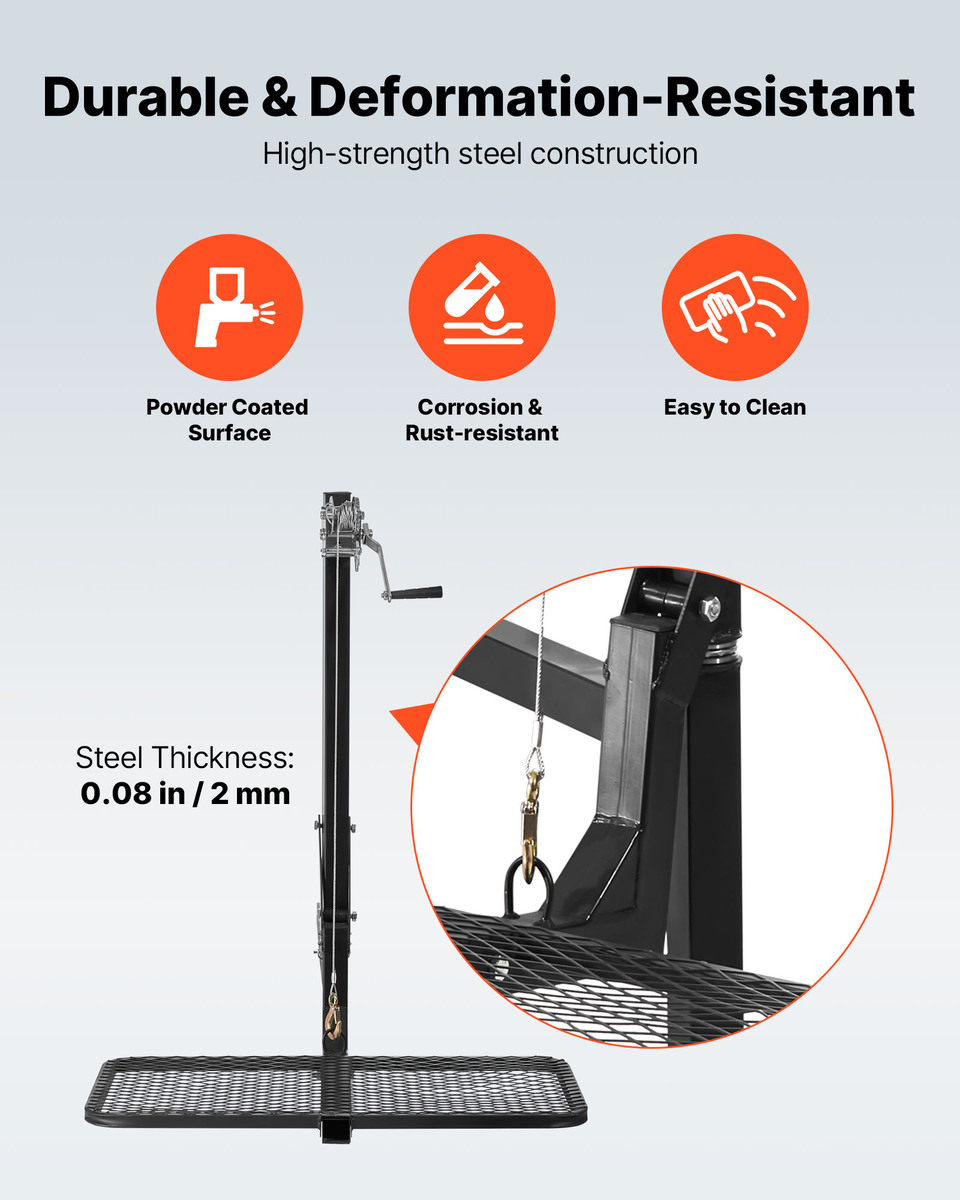 Versatile Use: Our hunting game hoist is equipped with a 2-inch truck hitch, compatible with various truck types. Ideal for outdoor hunting, farm animal lifting, fruit/vegetable transport, or lifting heavy items outdoors