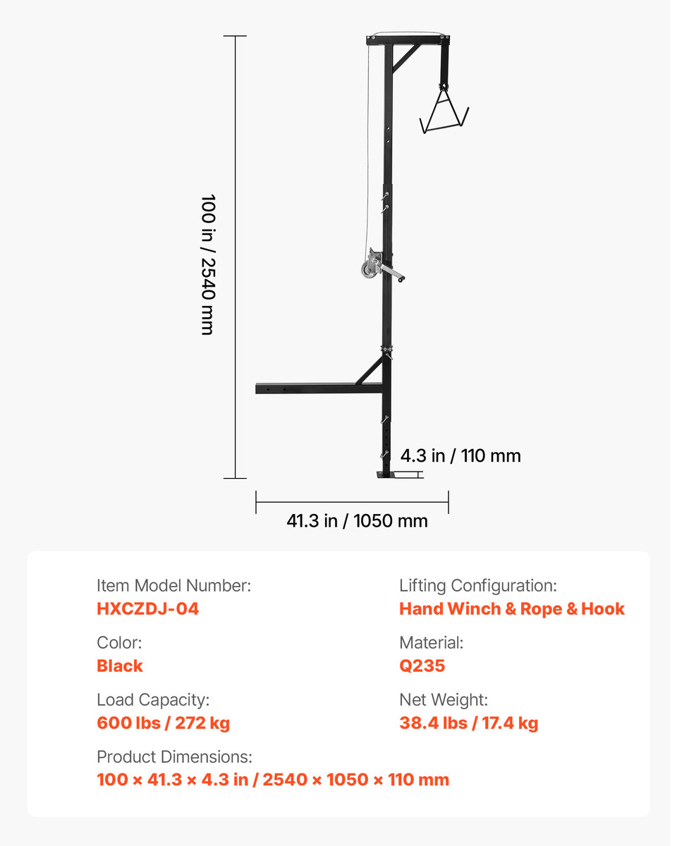 VEVOR Truck Hitch Game Hoist,600lbs,2"Receiver,360°,Adjustable,Gambrel Winch