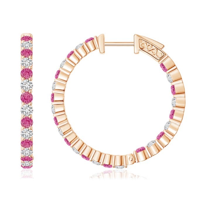ANGARA 0.95 Ct Pink Sapphire & Diamond Inside Out Hoop Earrings in 14K Gold