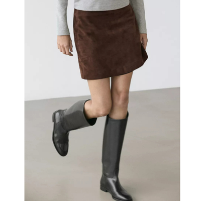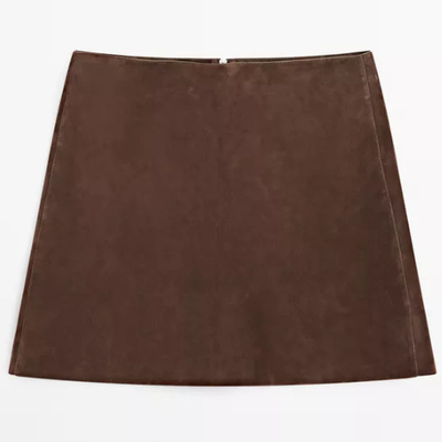 MASSIMO DUTTI BNWT 2026. BROWN SUEDE LEATHER MINI SKIRT. 5354/674