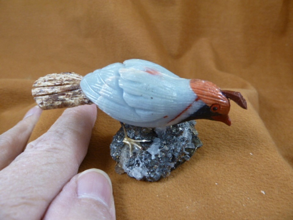 (#Y-BIR-QU-16) Excellent figurine of a MEDIUM QUAIL hand crafted in NATURAL GEMSTONES, average 2 to 2-1/4" tall x 3" long x 1-1/4" wide.