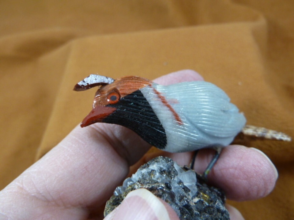 (Y-BIR-QU-16) Quail white red black bird gemstone STONE figurine Peru quails
