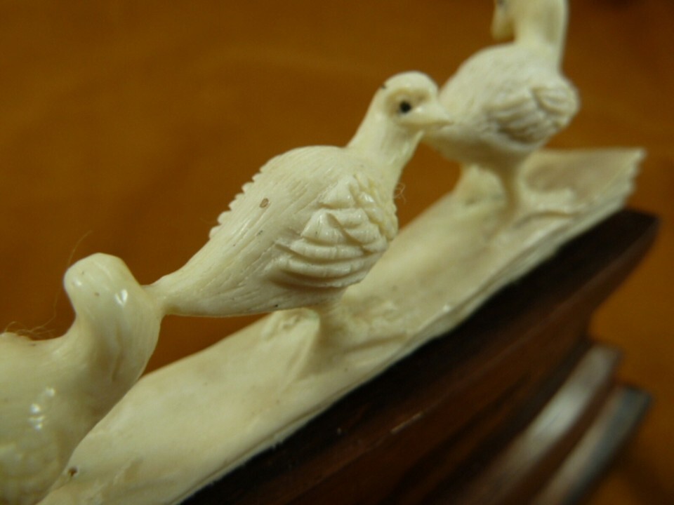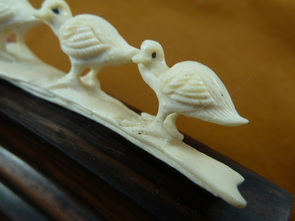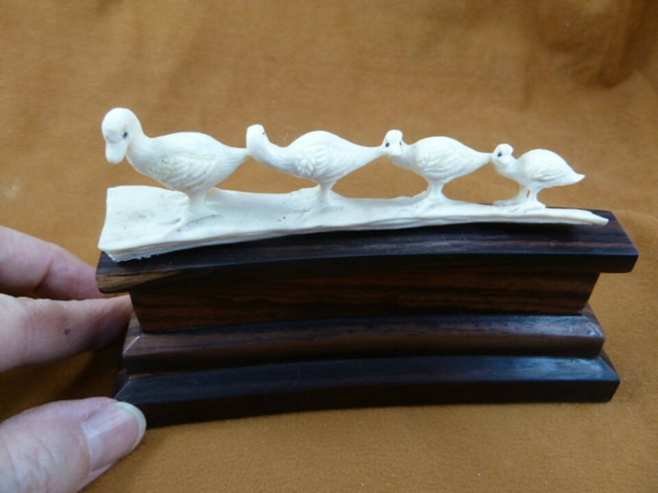 (DUCK-7) four Ducks ducklings shed ANTLER figurine Bali detailed carving duck