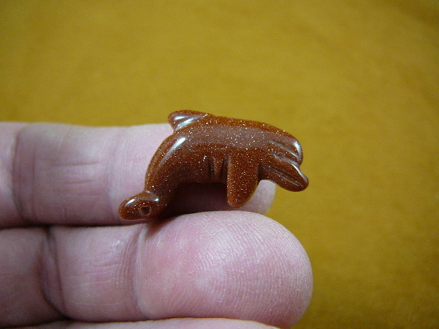 (internal #Y-DOL-505) Excellent gemstone carving of a tiny DOLPHIN, in polished ORANGE GOLDSTONE (glass with copper particles, has gemstone status though man-made), it measures 1-1/2" long, hand-carved in China. New, no defect. This is exactly the item you would receive. Great for the collector!