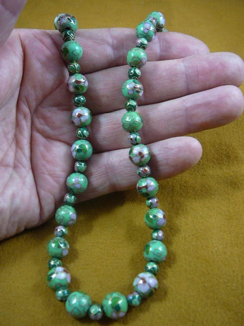 (Internal #V-249-2) You are bidding on a beautiful, handmade, Medium green cloisonne beads, matching spacer beads. Necklace is made with 8 6 mm round beads, 20" long with gold safety closure.