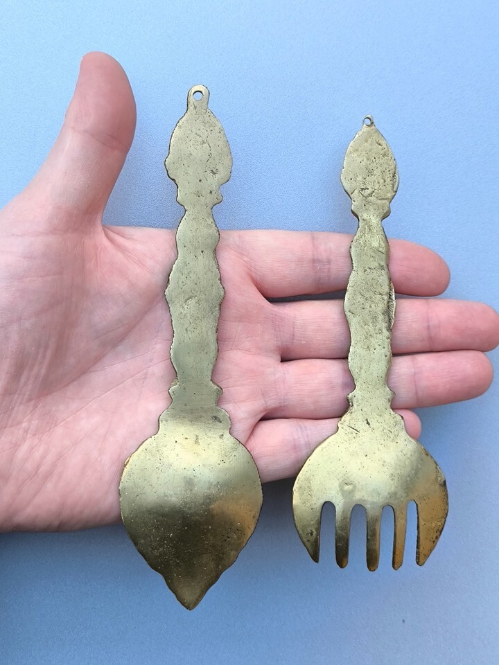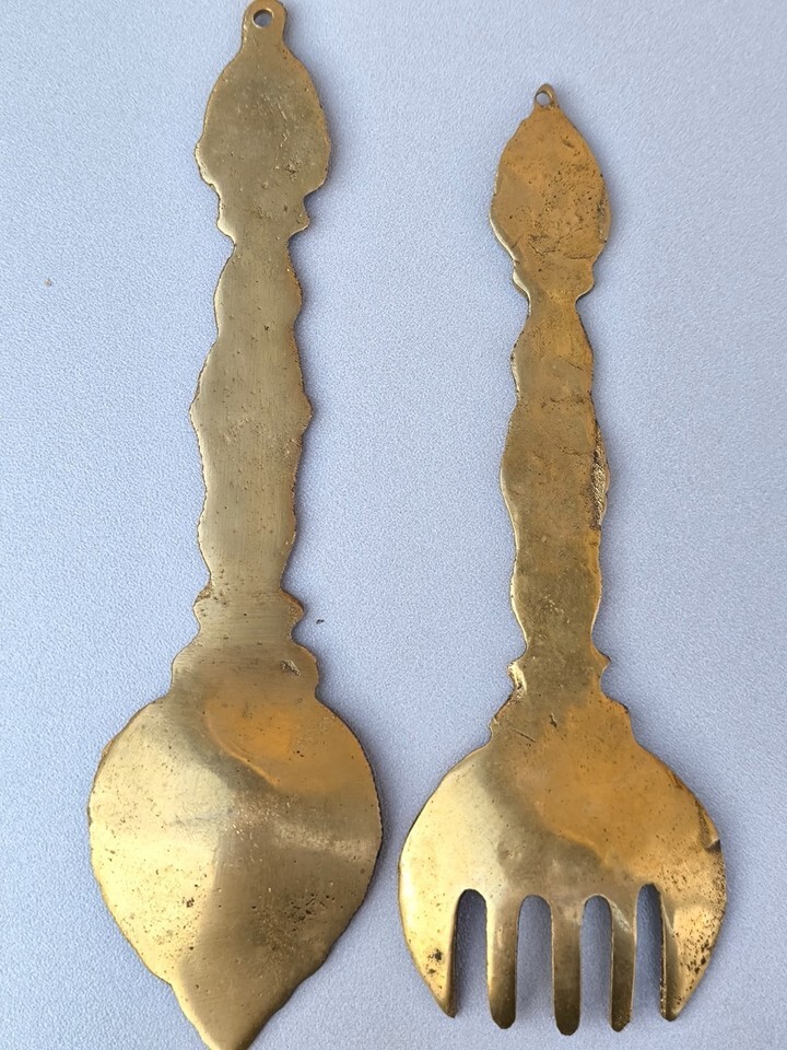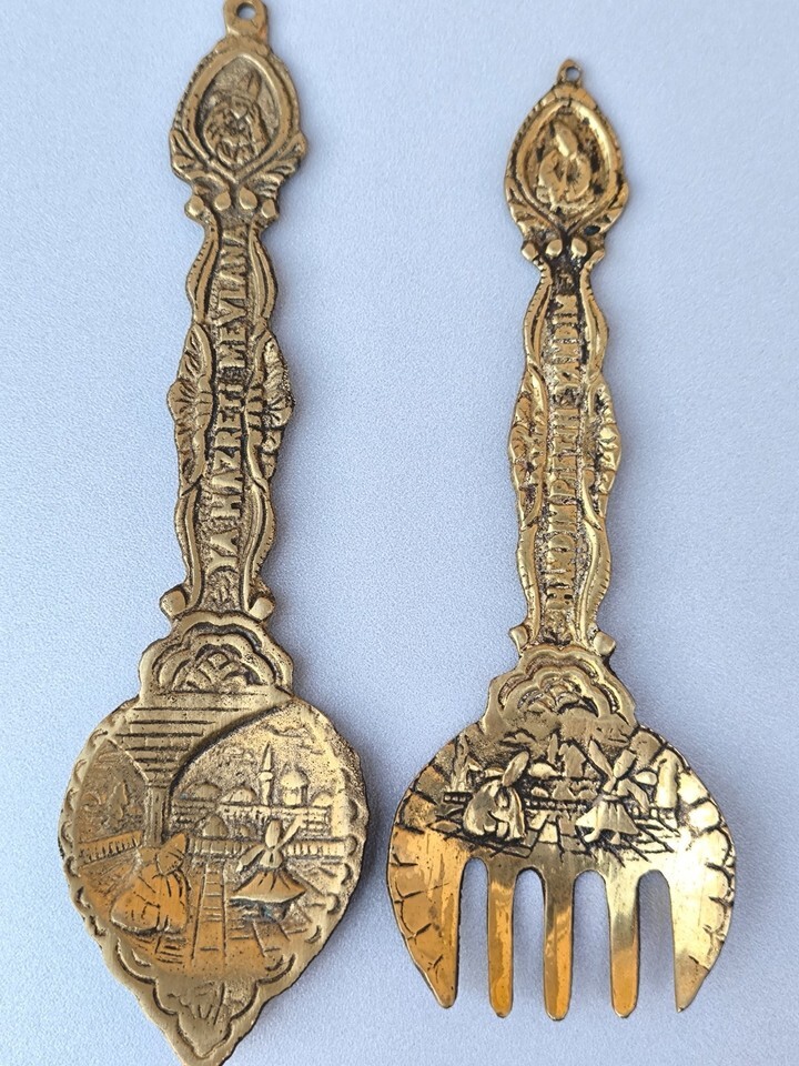 Vintage Very Rare 1950's Turkish Handmade Rumi Brass Fork & Spoon Wall Art Decor