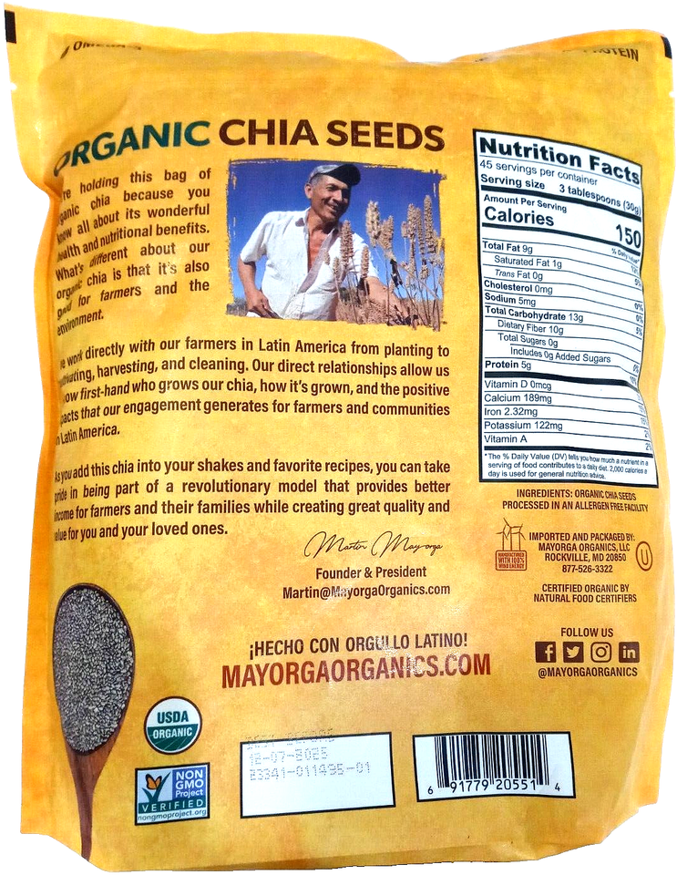 Mayorga Organics Organic Chia Seeds 3 lbs EXP 12/2025 |