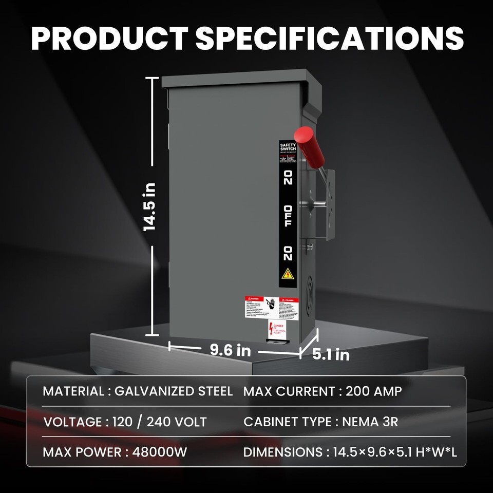 Durable: The transfer switch for generator is made of galvanized steel with a protective coating and upgraded to a 1.5mm thickness, making it strong and corrosion-resistant. Outdoor generator transfer switches meets NEMA 3R standards, allowing it to withstand harsh weather conditions such as rain, snow, hail, wind, and sun exposure. This ensures uninterrupted, stable performance, making it the ideal choice for outdoor power needs