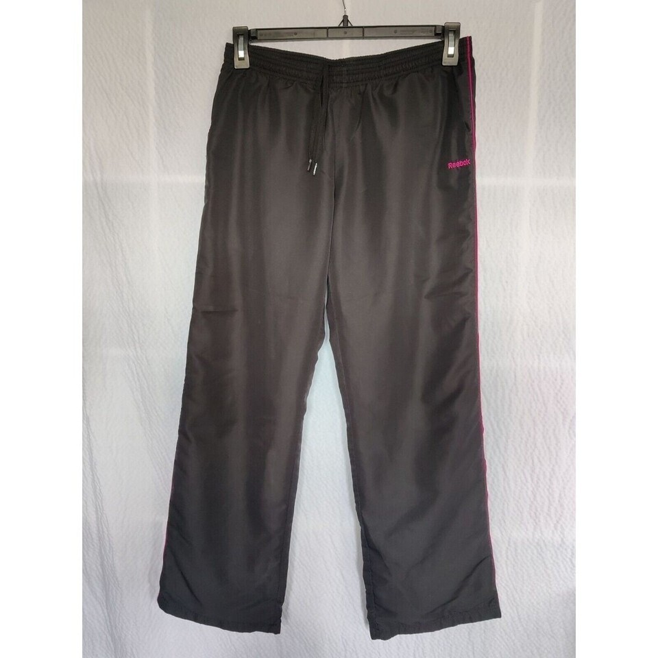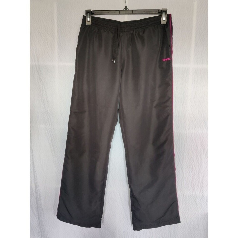 Reebok Track Pants Windbreaker Womens Size Medium Black Pink