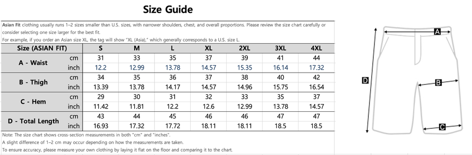 Asian Fit refers to clothing tailored for body shapes commonly found in Asian populations. These items typically run 1-2 sizes smaller than U.S. sizes, with narrower shoulders, chest, and overall proportions. Please check the size chart carefully or consider sizing up for the best fit.