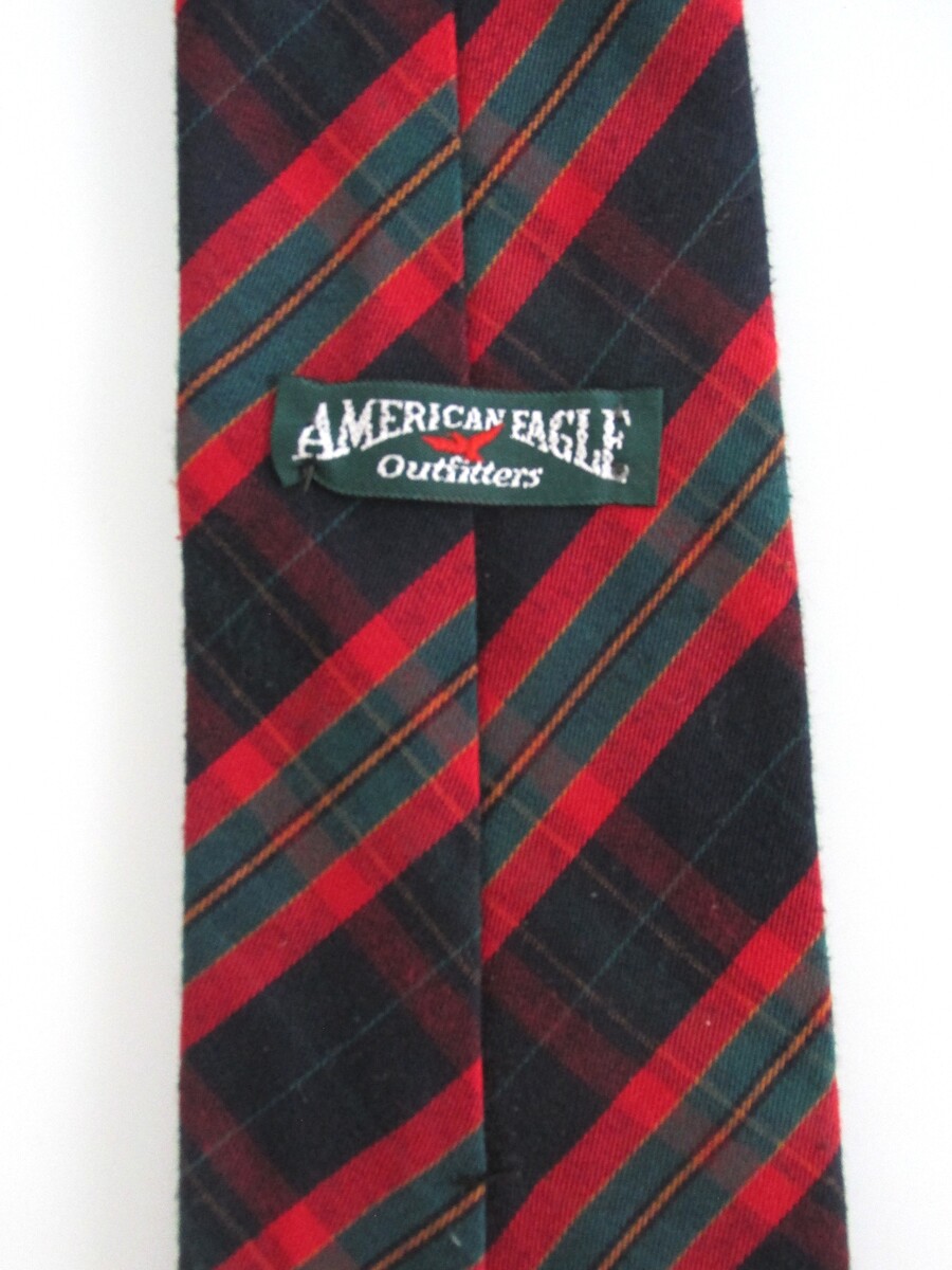 Description: Up for sale is an American Eagle Outfitters men's cotton tie. It is handmade in the USA of 100% cotton. The dimensions are approximately 56" long x 4.00" wide. The tie has a multicolored tartan plaid pattern in red, navy blue, green yellow. This tie is in like new condition.