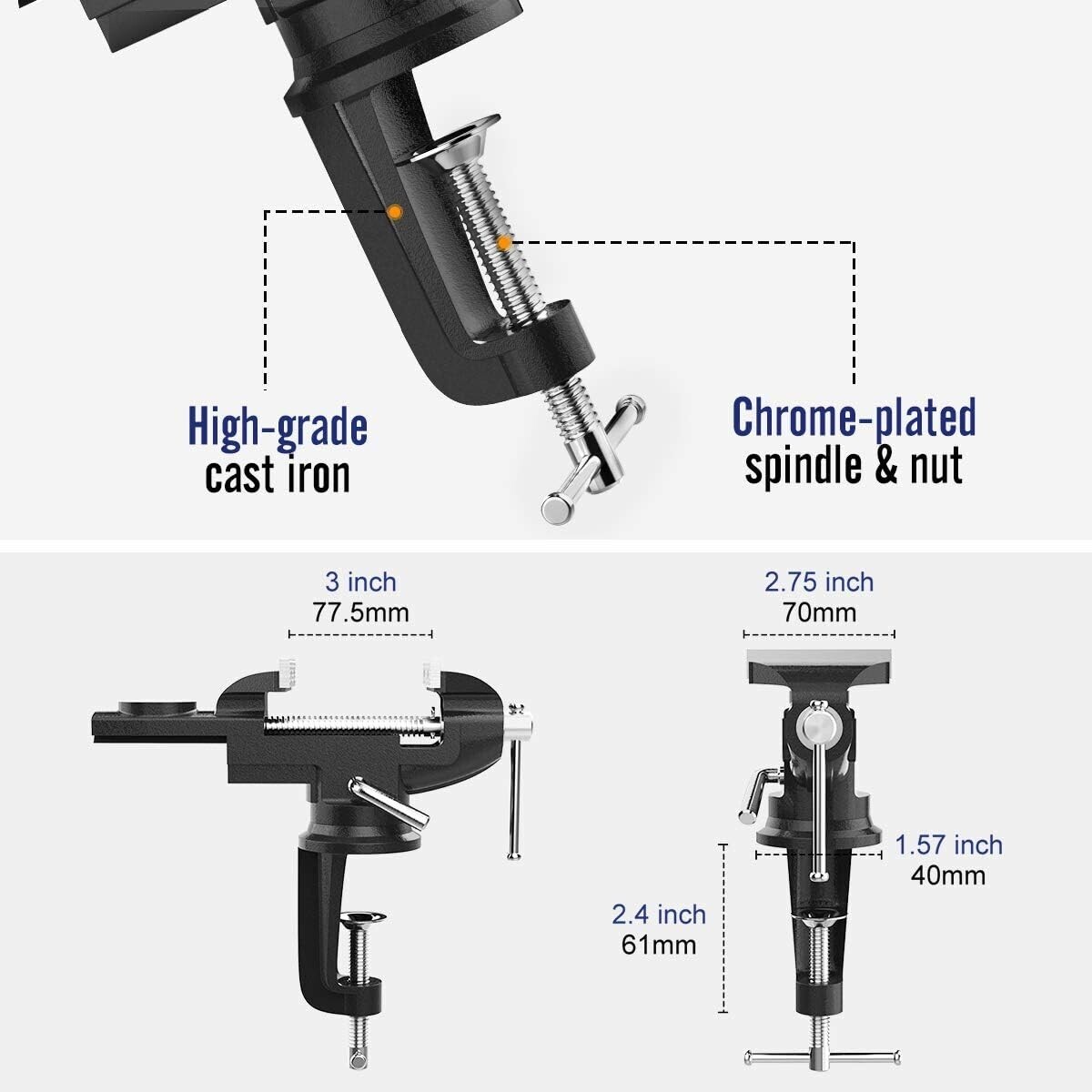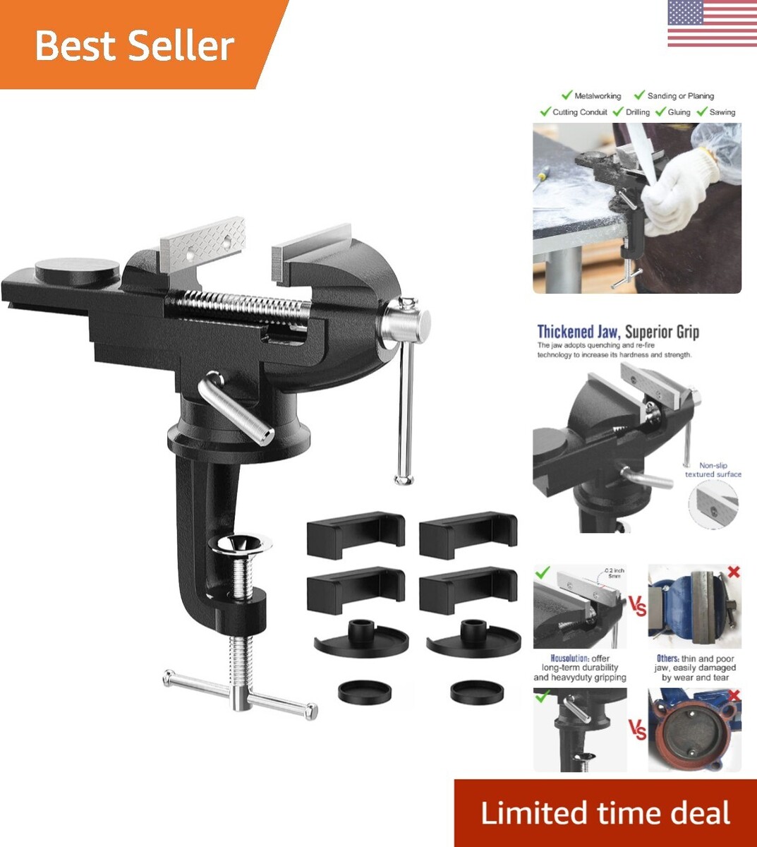 Universal Table Vise 3 Inch, 360°Swivel Base Bench Clamp Home Vise Clamp-On V...