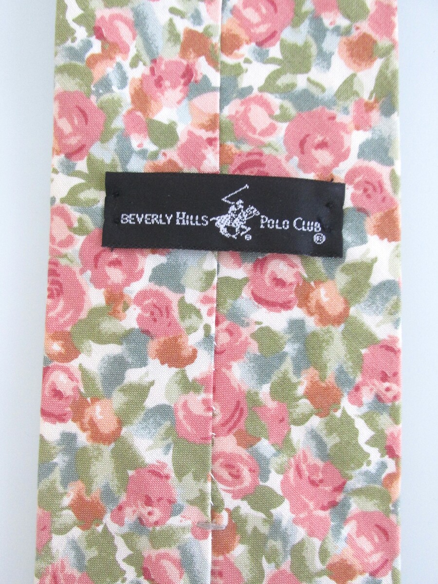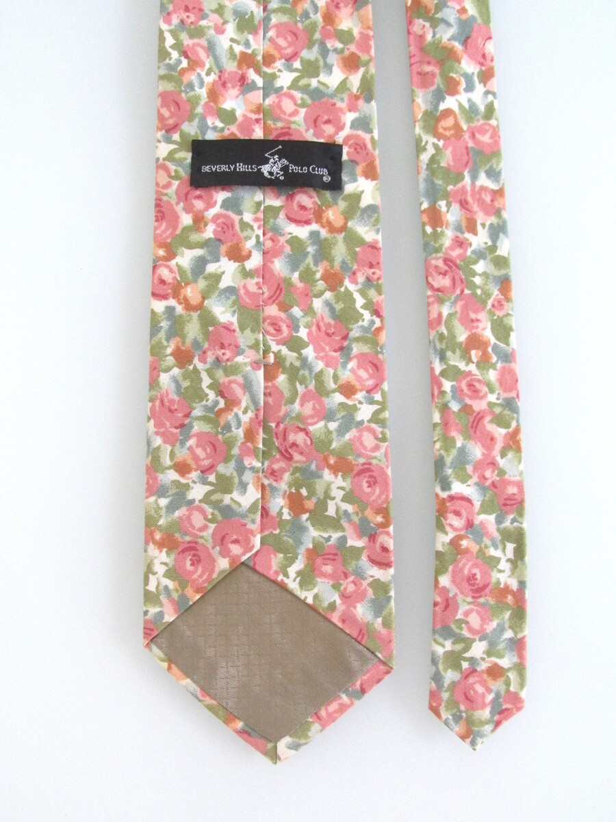 Description: Up for sale is a Beverly Hills Polo Club men's cotton tie. It is handmade of 100% cotton. The dimensions are approximately 56" long x 3.75" wide. The tie has a multicolored floral pattern in pastel pink, green blue white. This tie is in perfect condition.