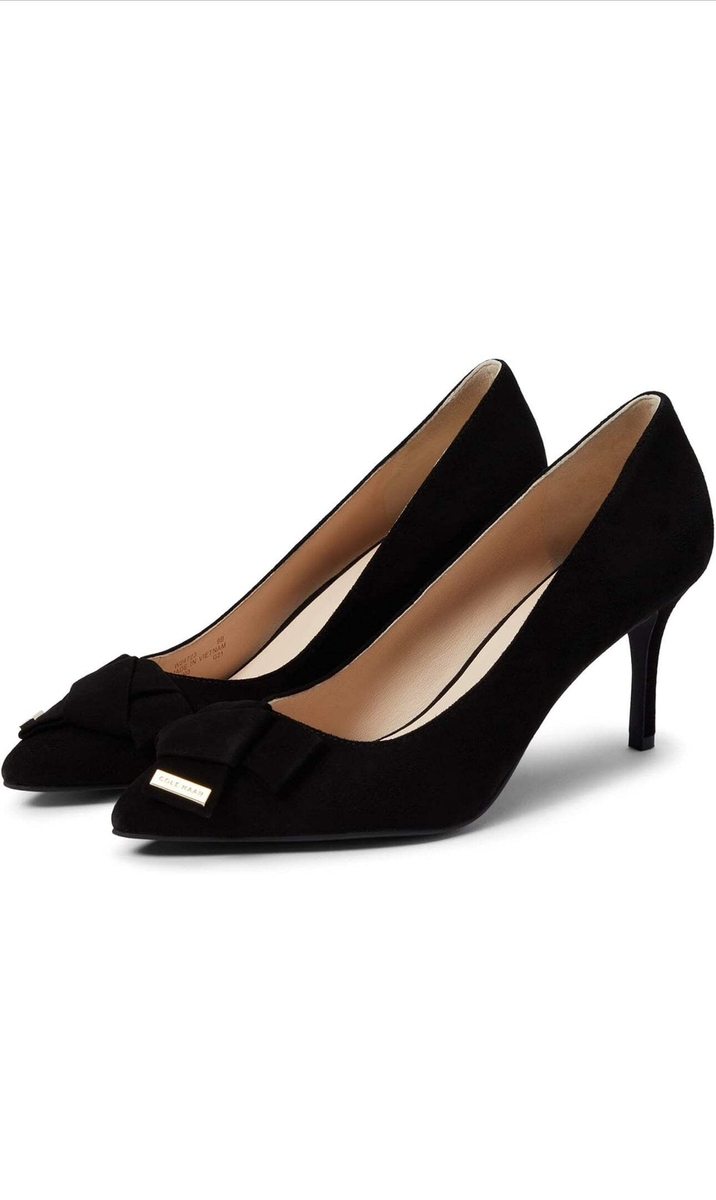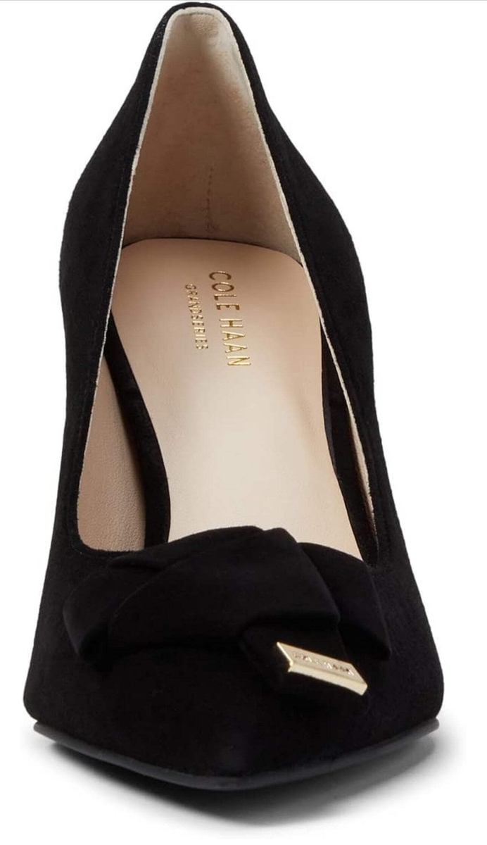 Cole Haan Women's Ina Pump High Heels Get event-ready wearing these elegant Cole Haan Ina Pump (75 mm) Heels and look gorgeous. Leather upper and lining. Slip-on style. Pointy toe. Bow on front.