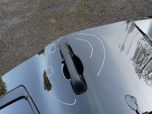 Notes: Has dentsHas dents (circled). The area around door handle is pushed in. Paint color is attitude black. Has some scratches. Local pickup only.