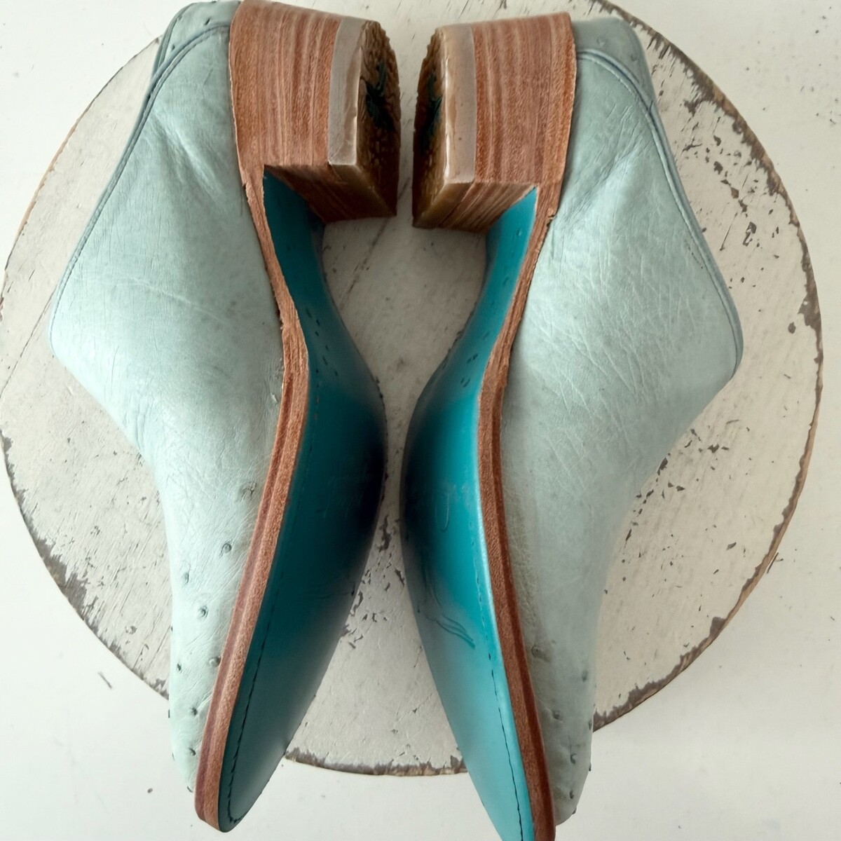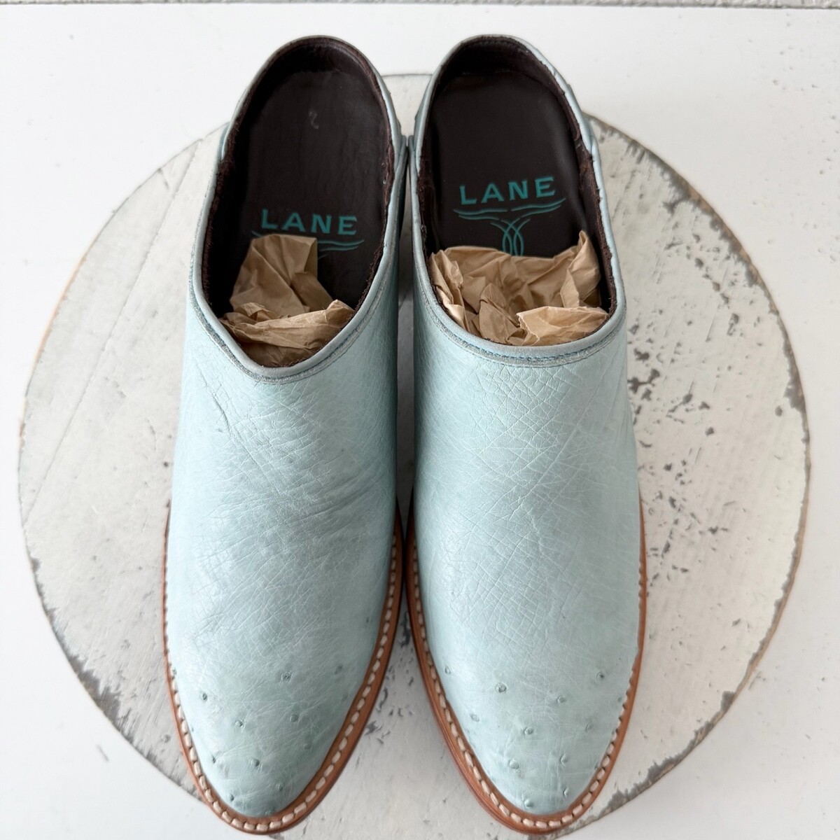 Lane Plain Jane Mule Womens Blue Ostrich Leather Cowboy Boots Western Size 7.5