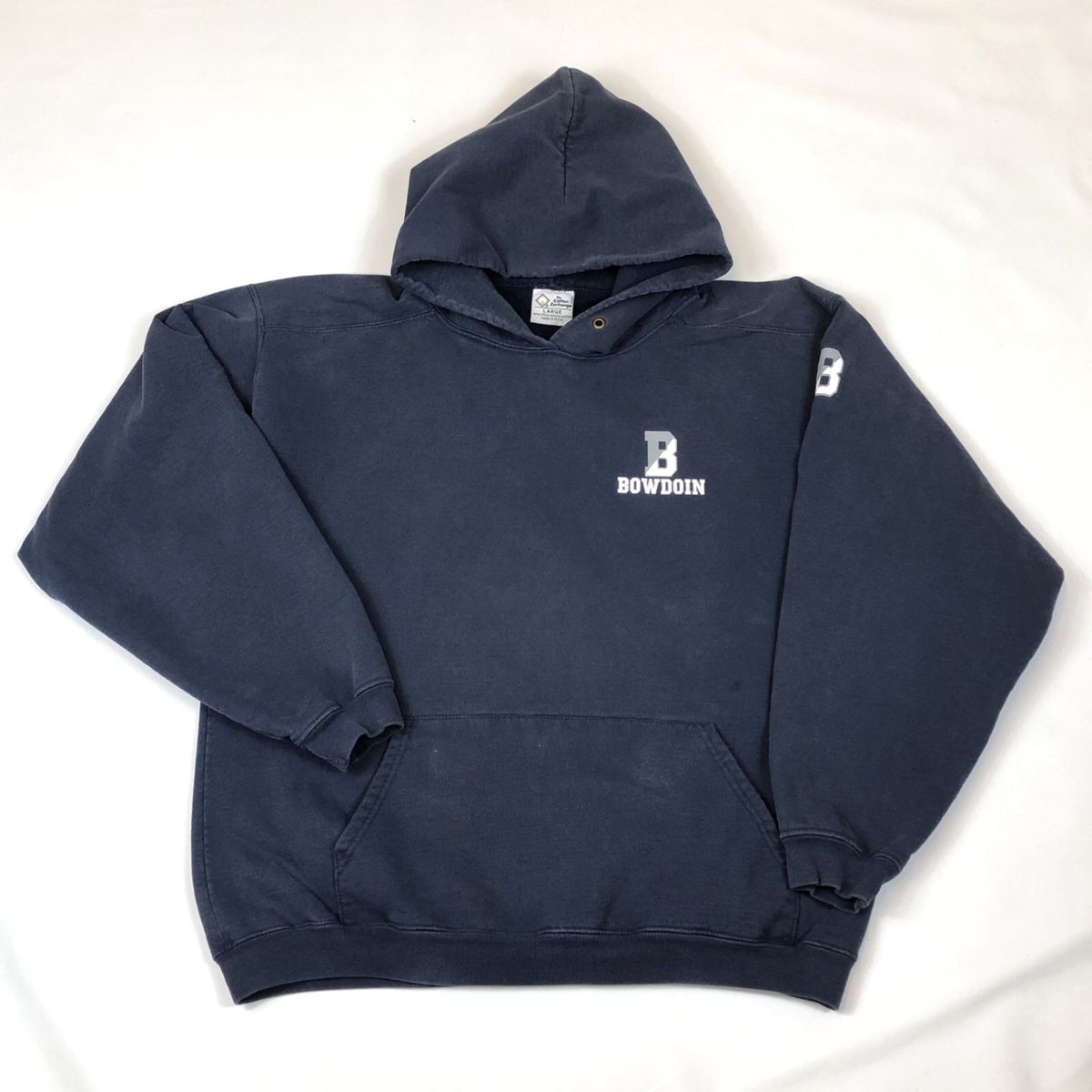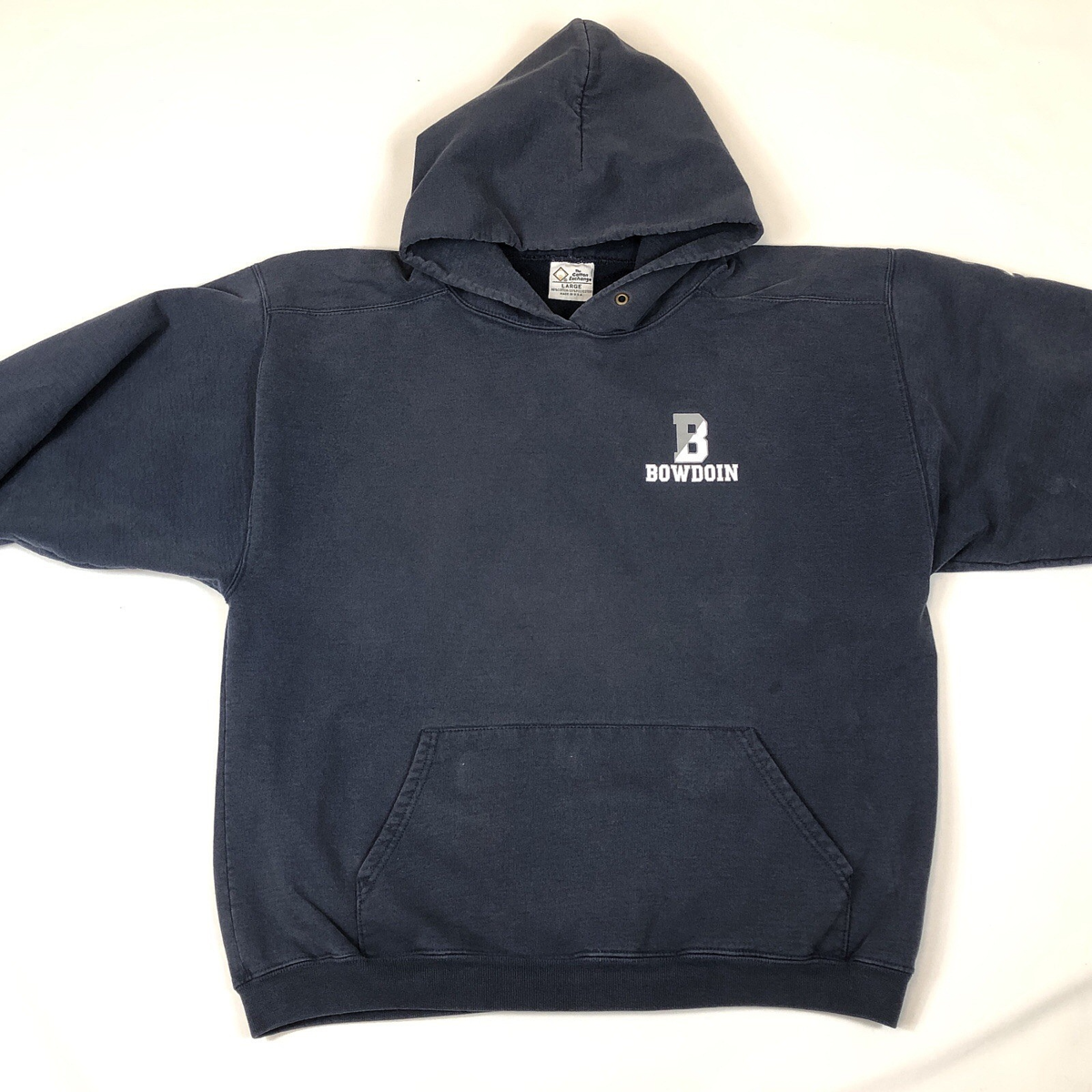 Vintage Bowdoin College Cotton Exchange Heavyweight Blue Hoodie Sweatshirt