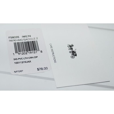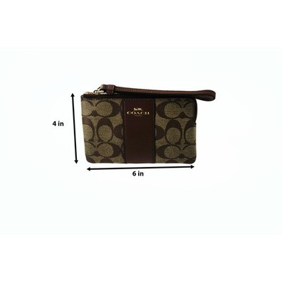 Keywords: Coach wristlet, signature pattern, PVC leather, khaki, saddle brown, zip closure, designer accessory, coin purse, card holder, evening clutch, travel organizer, gift for her, everyday carry