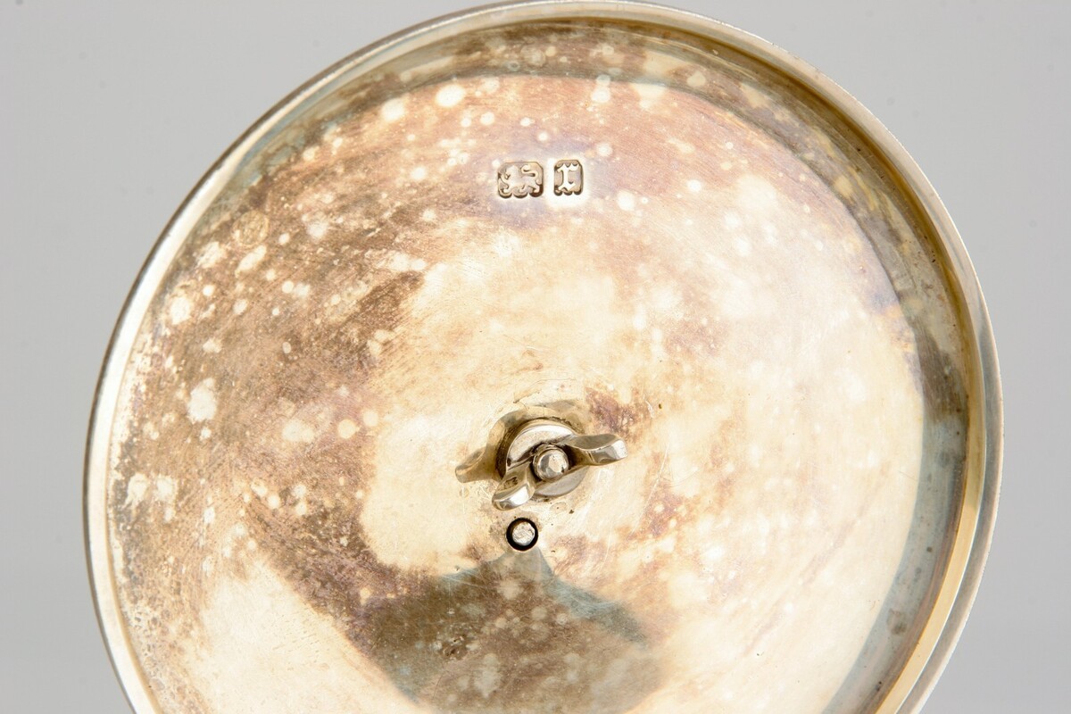 Condition: Excellent antique condition; silver has developed a natural patina; very light surface scratches visible; interior is clean and without damage