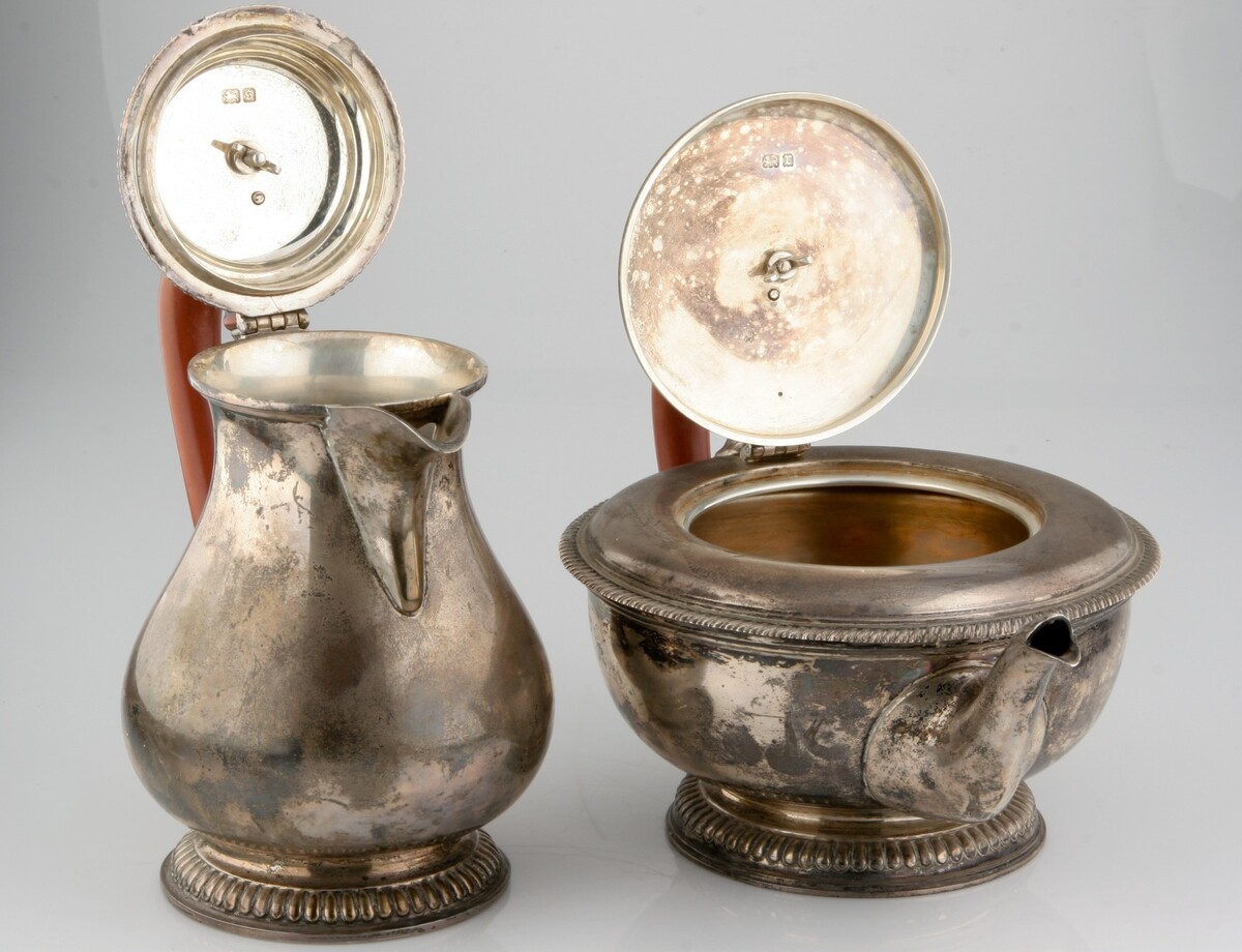 Harrods of London Silver Set Teapot & Pitcher (1916-1917) Red Handled RWB 1476gr