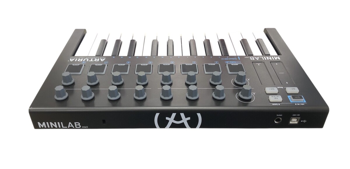 Type: MIDI ControllerBrand: ArturiaModel number: MkiiModel name: MinilabColor: BLack/WhiteSize: 25 keysUse type: HomeRemote included: noPower supply included: yesCase included: noCondition:UsedNotes:Aturia MiniLab MkII Universal MIDI Controller for Music Production