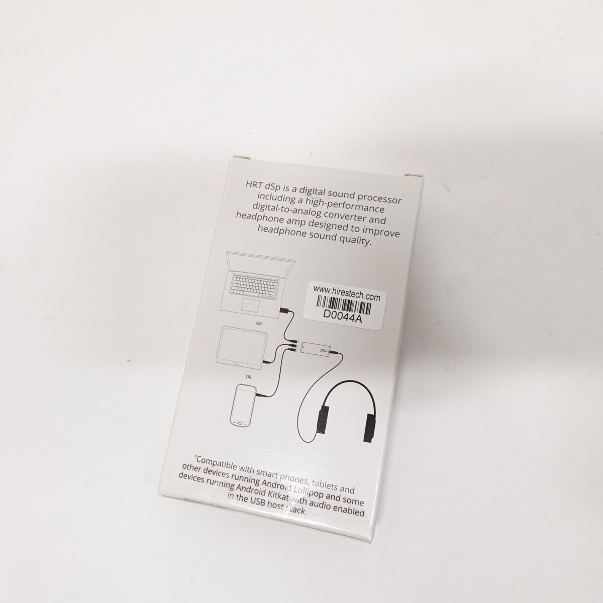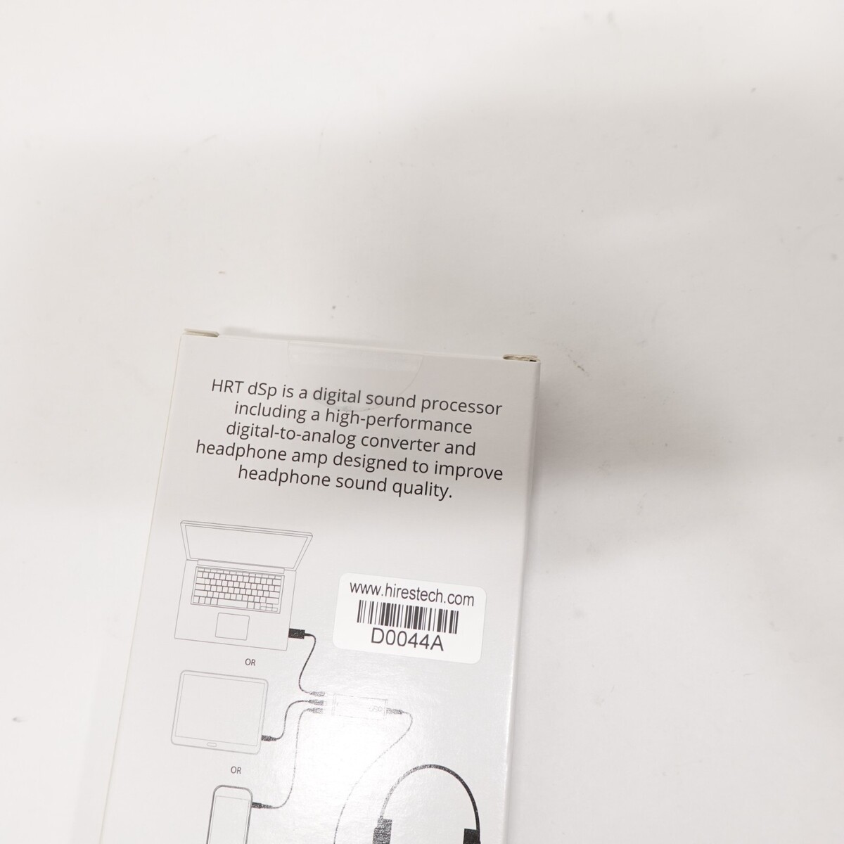 This is a new, factory-sealed HRT dSp external USB digital-to-analog converter (DAC) and headphone amplifier. It connects via USB and bypasses noisy or weak built-in audio found in many laptops and desktops, delivering cleaner, clearer sound through headphones or powered speakers.