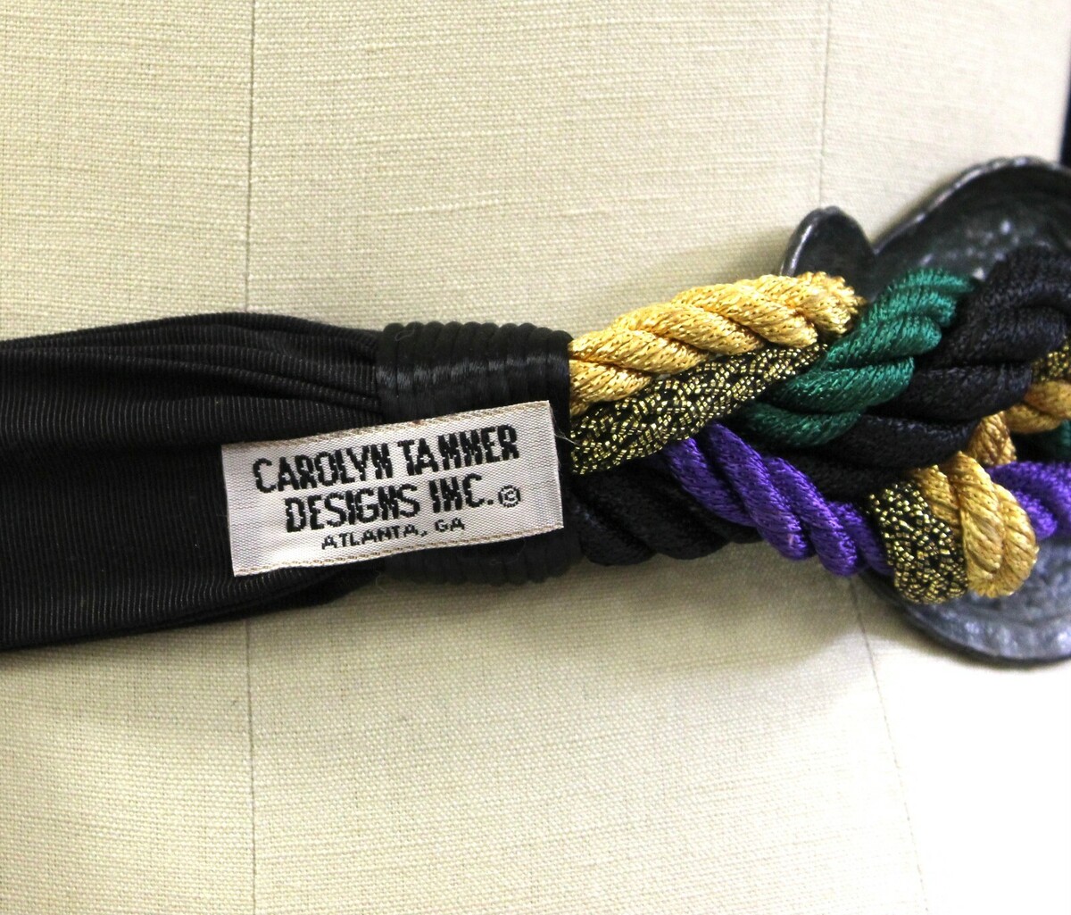 CAROLYN TANNER DESIGNS Vintage Braided Rope Belt Medallion Black Green Gold Adjustable SML- love the big purple cabochon!