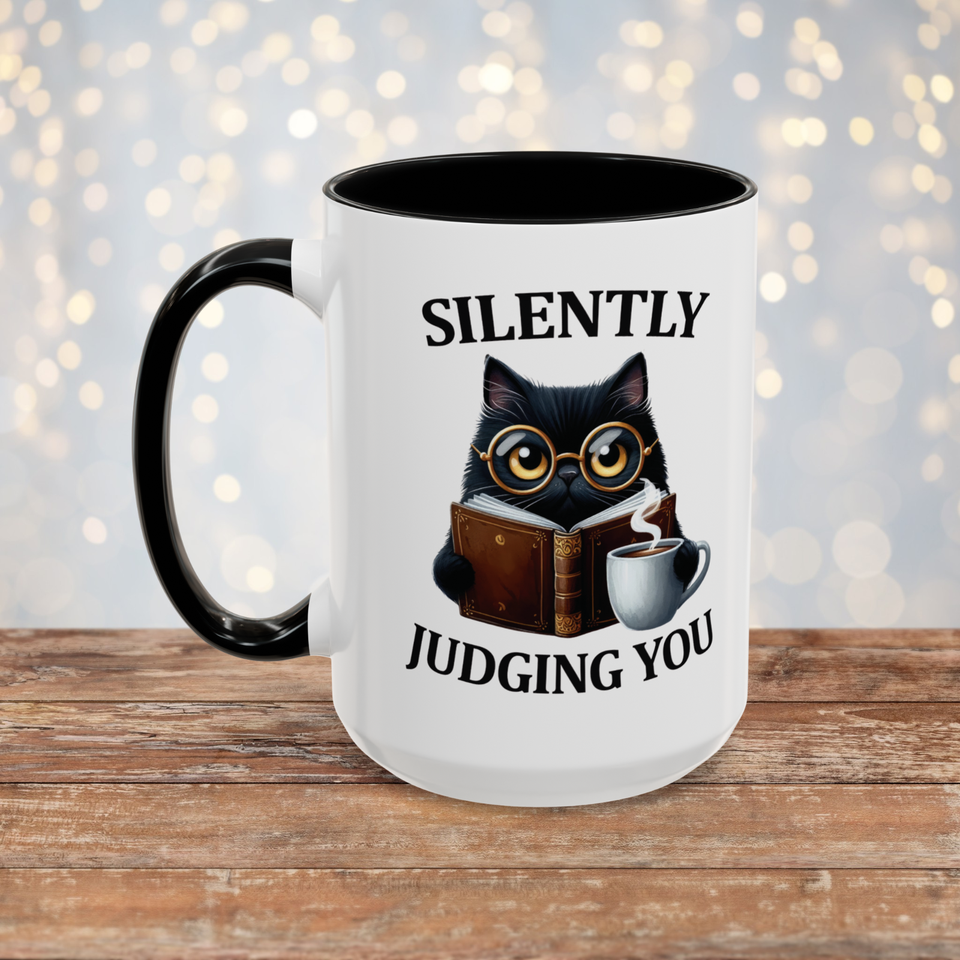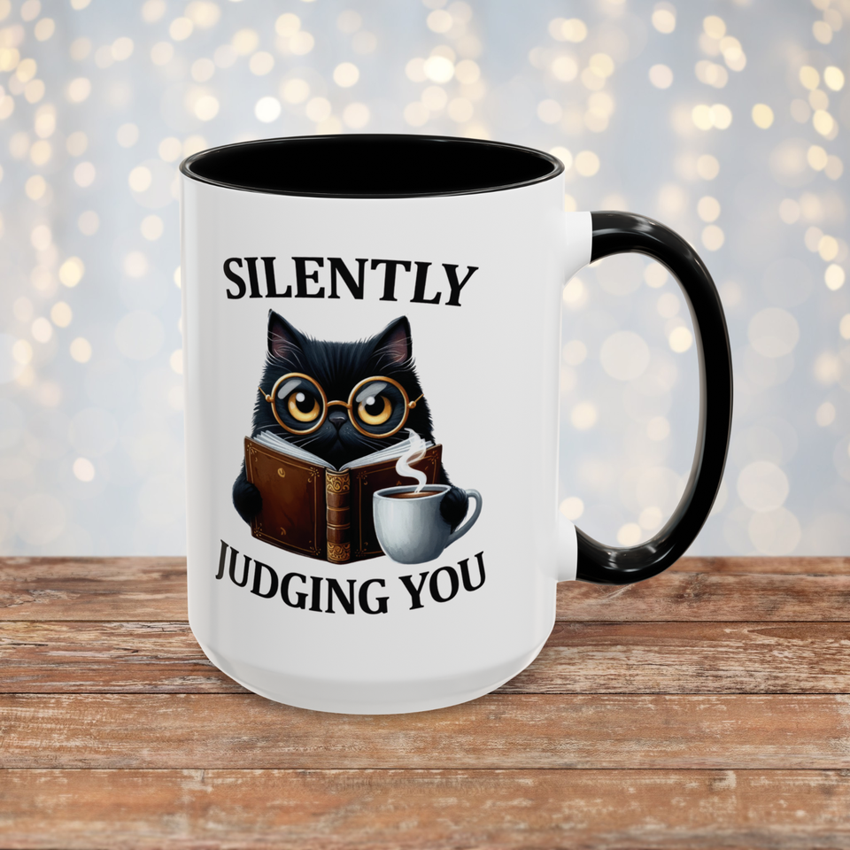 SILENTLY JUDGING YOU Cat Funny Sarcastic Mug Gift Coffee Cup Coffee Mug 11, 15oz