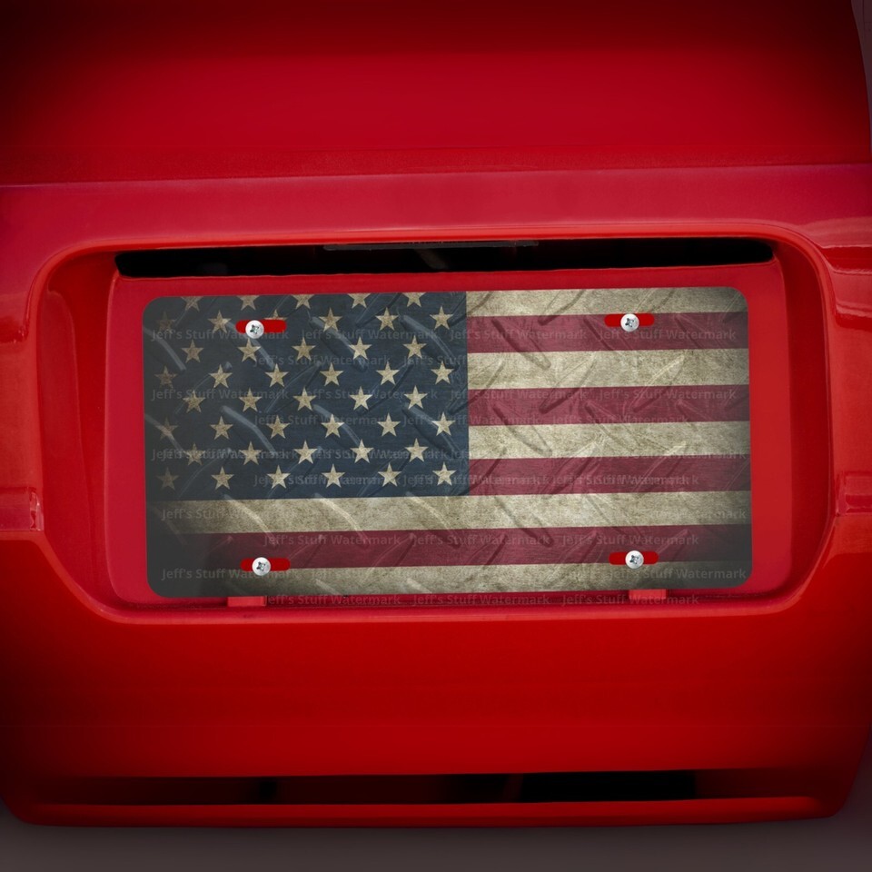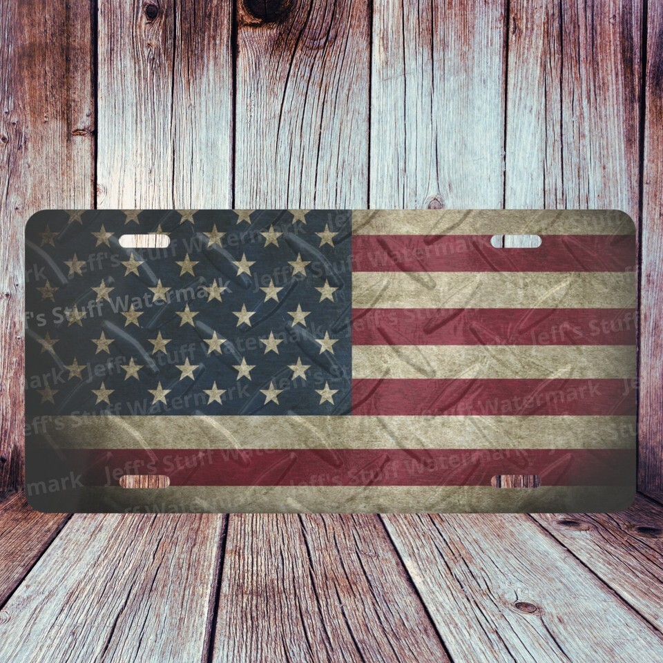 Vintage American USA Flag Aluminum License Plate Tag ? Vanity Car Plate for Auto