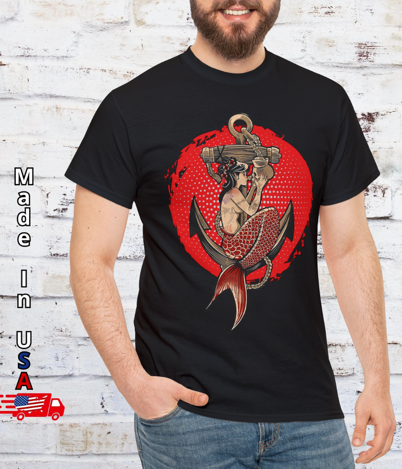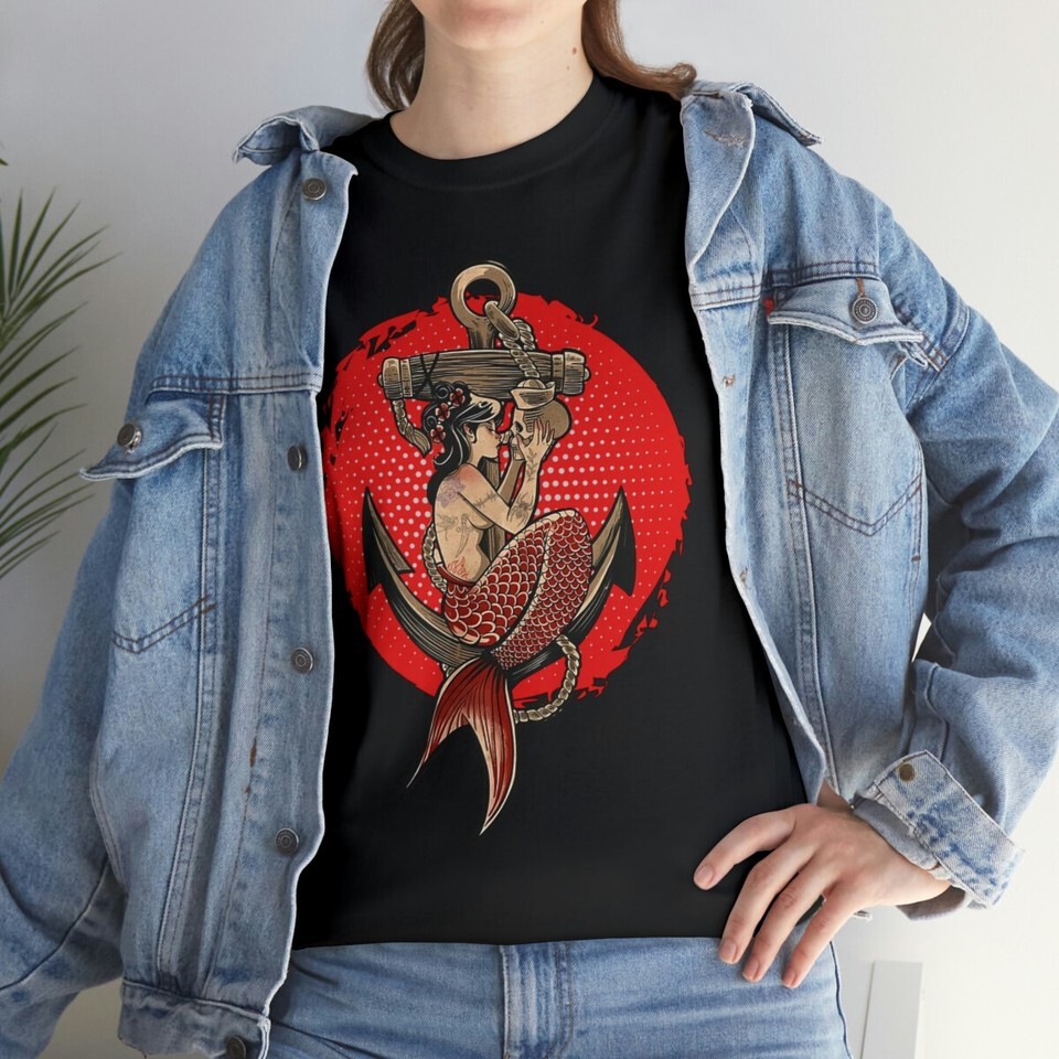 Vintage Old School Mermaid T Shirt Marine Beach Tattoo Fan Clothing