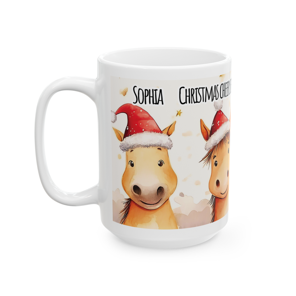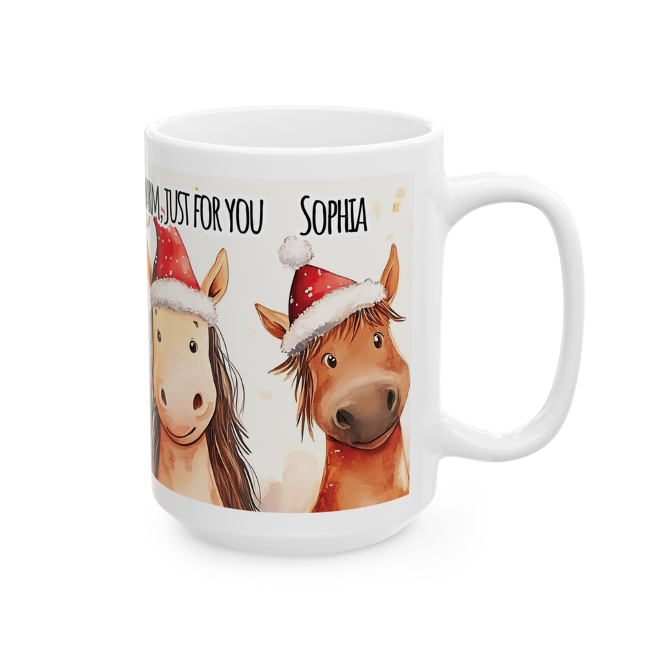 Personalized Text Custom Mug Christmas Horse Coffee Cup Family Gift (11, 15oz)