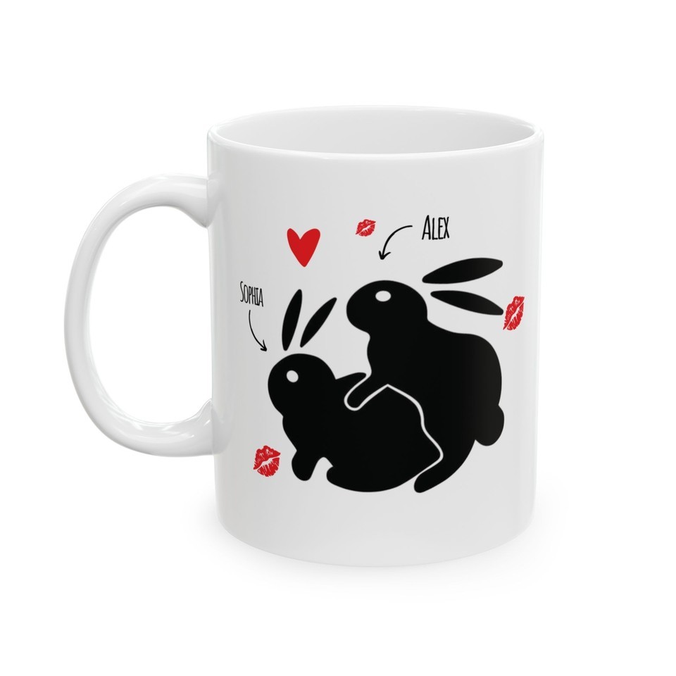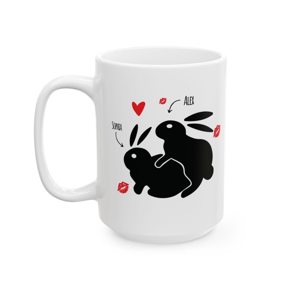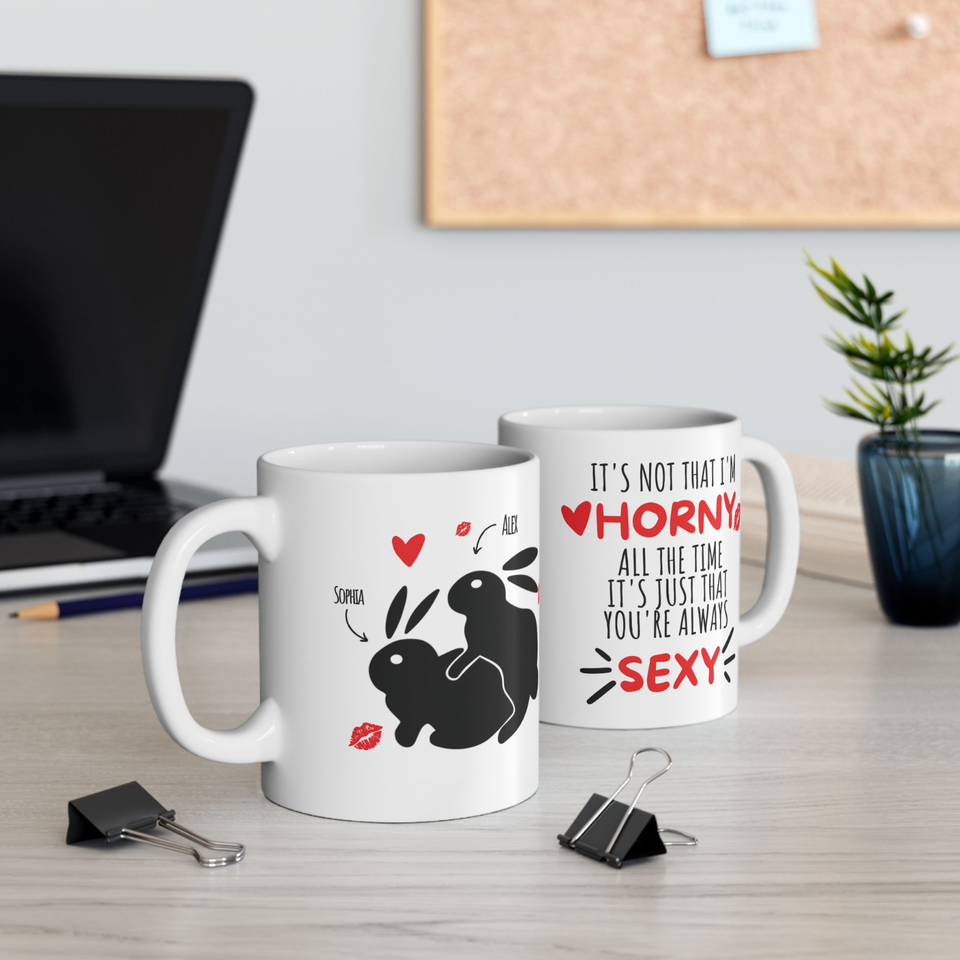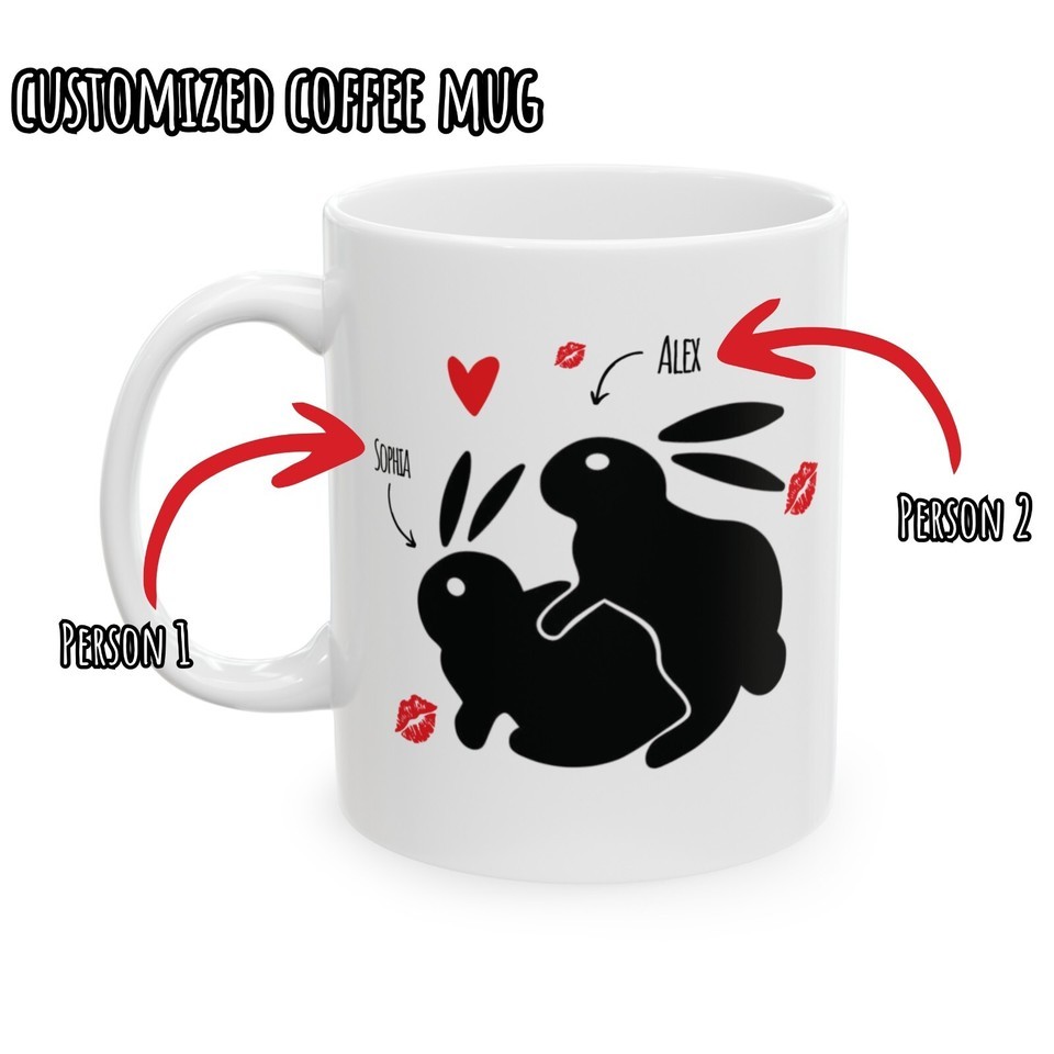 Personalized Funny Couple Horny Rabbits Ceramic Coffee Mug Gift Sarcastic Coffee Cup (11, 15oz)