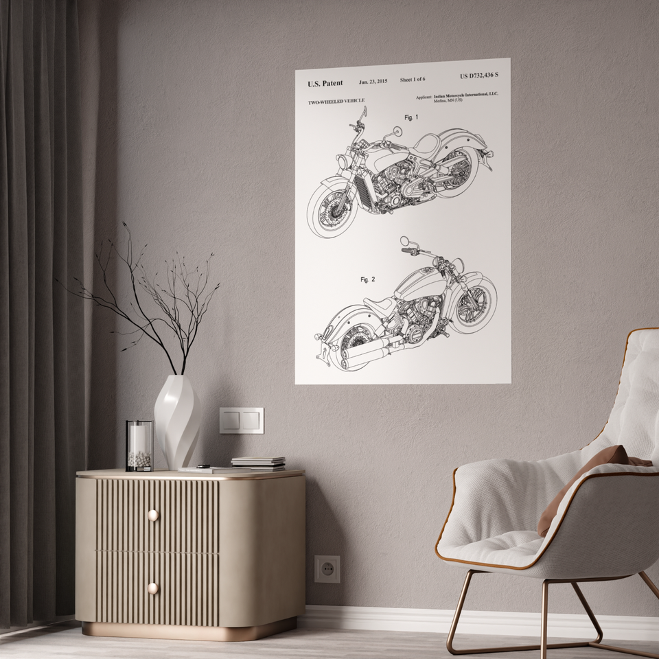 Scout Motorcycle Indian Patent Wall Art Print Home Decor Gloss Poster Classic (vertical)