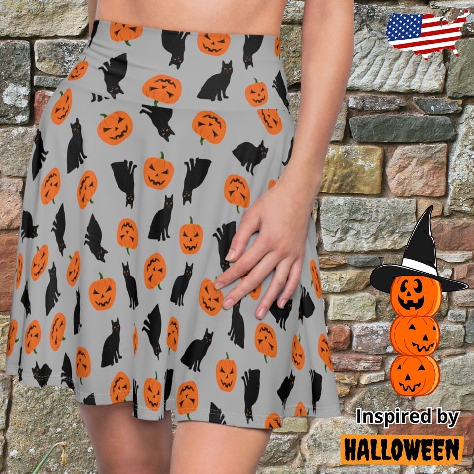 Women's Skater Skirt Pattern Halloween Inspiered Clothing Cosplay Pumpkins Cats