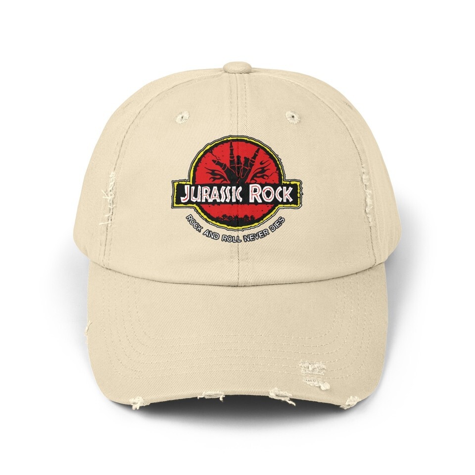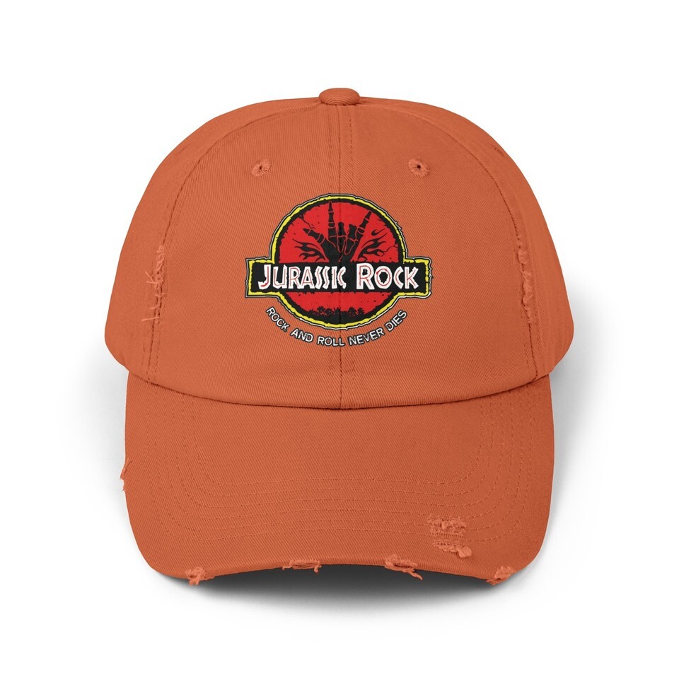 Jurassic Rock Distressed Cap Gamer Movie Parody Dad Logo Funny Hat DTF Printed