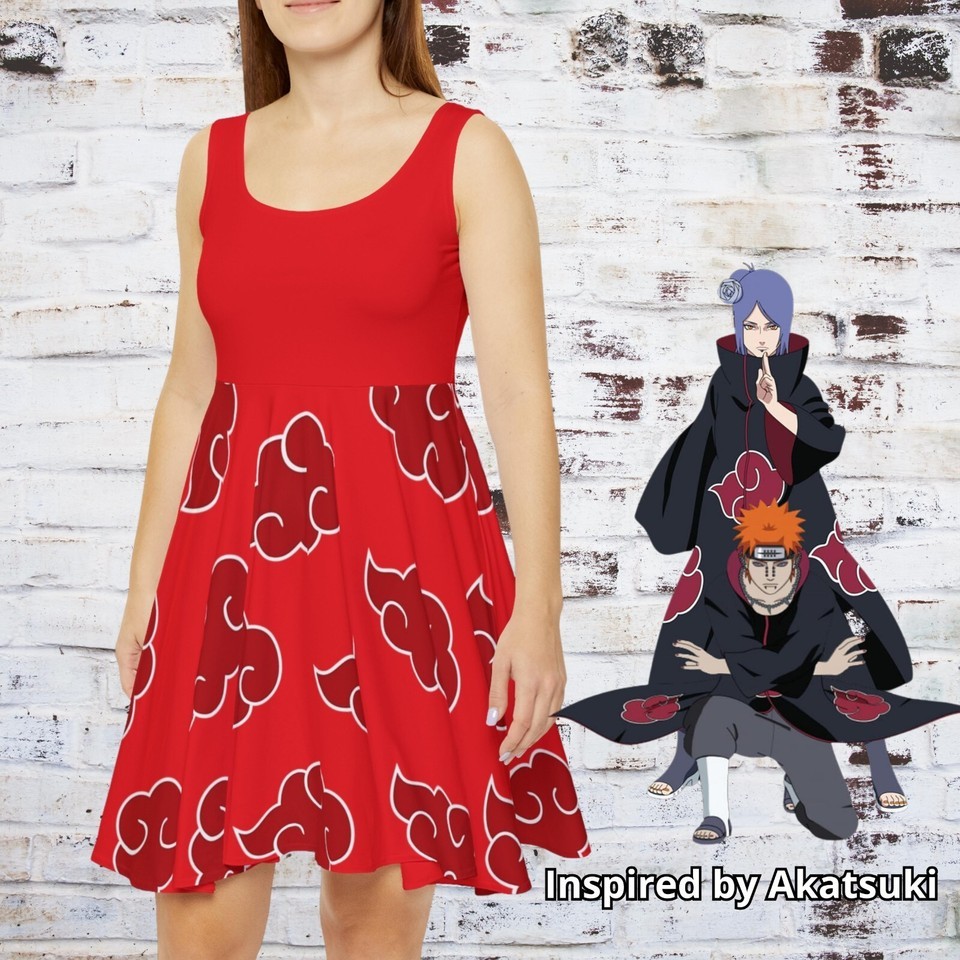 Red Akatsuki Cosplay Naruto Kawaii Women's Skater Dress, Anime Manga Japanese