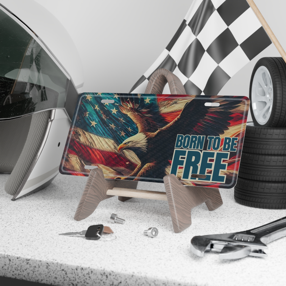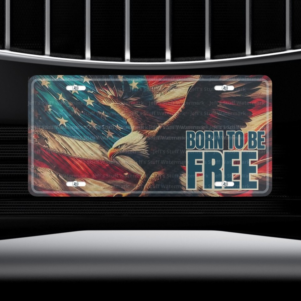 Vintage Eagle Born to be Free Aluminum License Plate Tag Auto Car Vanity Plate