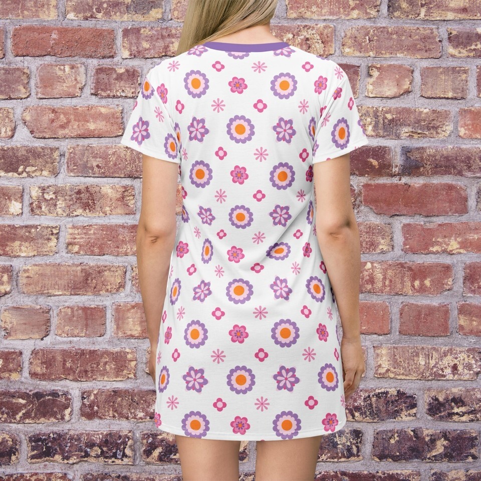 This All-Over-Print T-Shirt Dress is tagless, custom cut and sewn to match every style. The fun prints will make this t-shirt dress a great piece to sell online.