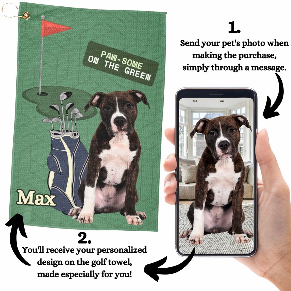 Personalized Golf Towel, Custom Golf Towel with Ring, Pet Design, Fun Golf Gifts