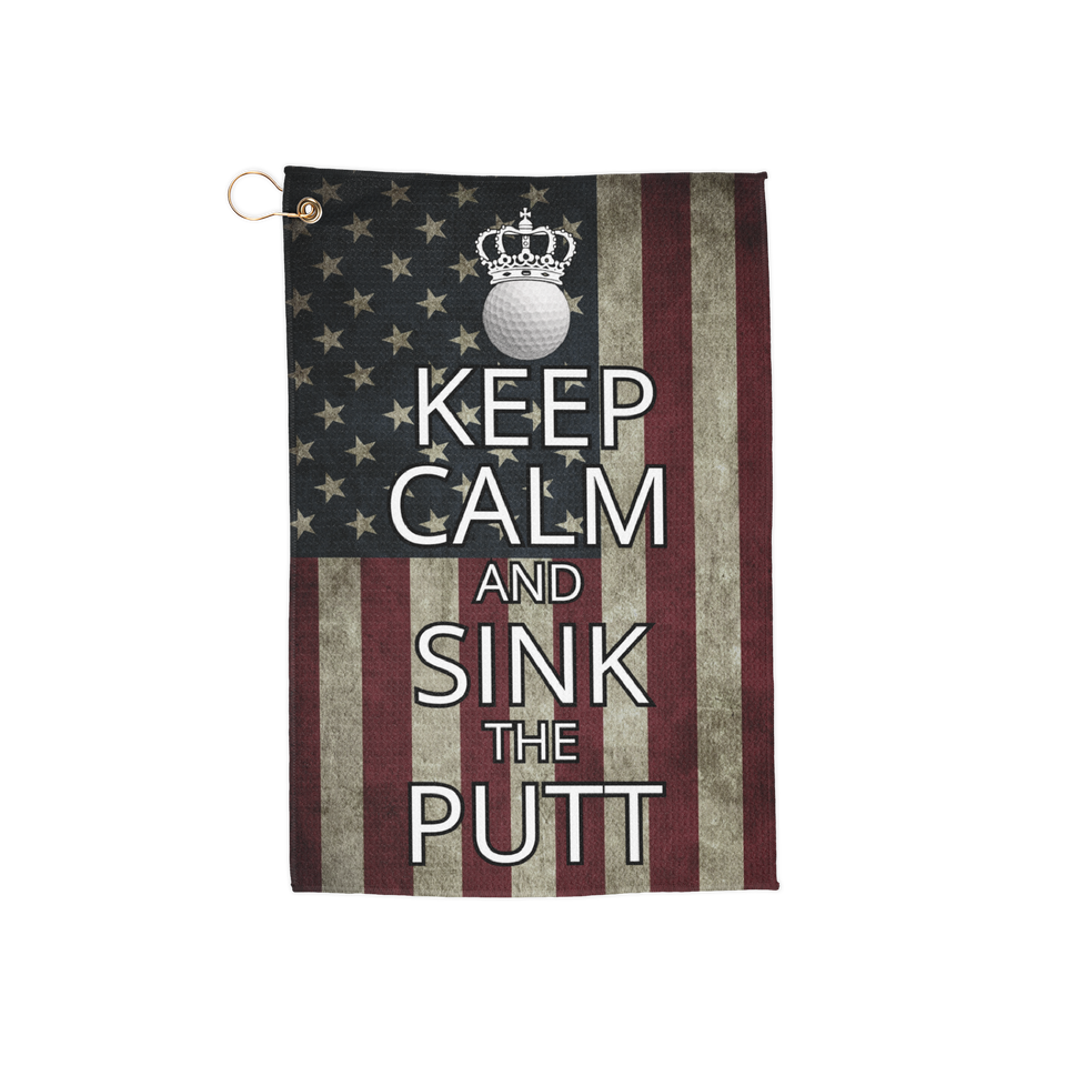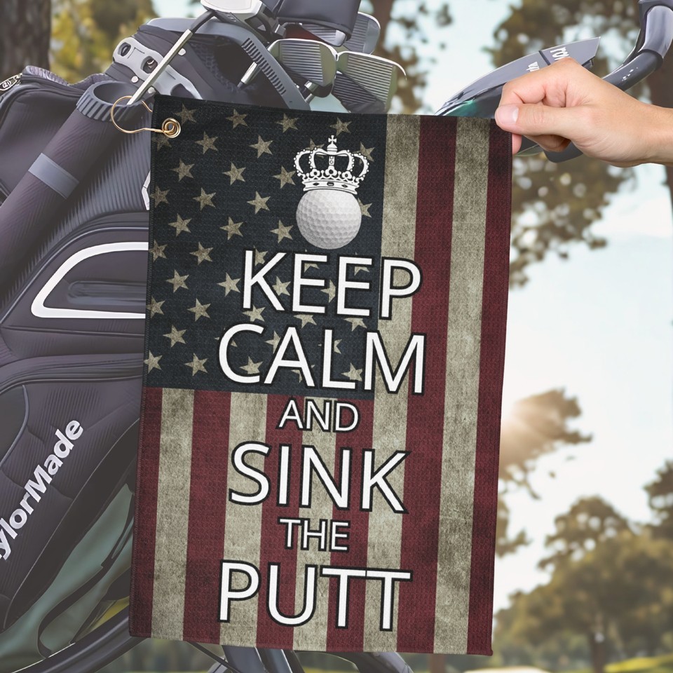 Keep Calm and Sink The Putt Golf Towel Microfiber with Grommet, Ring, Funny Gift