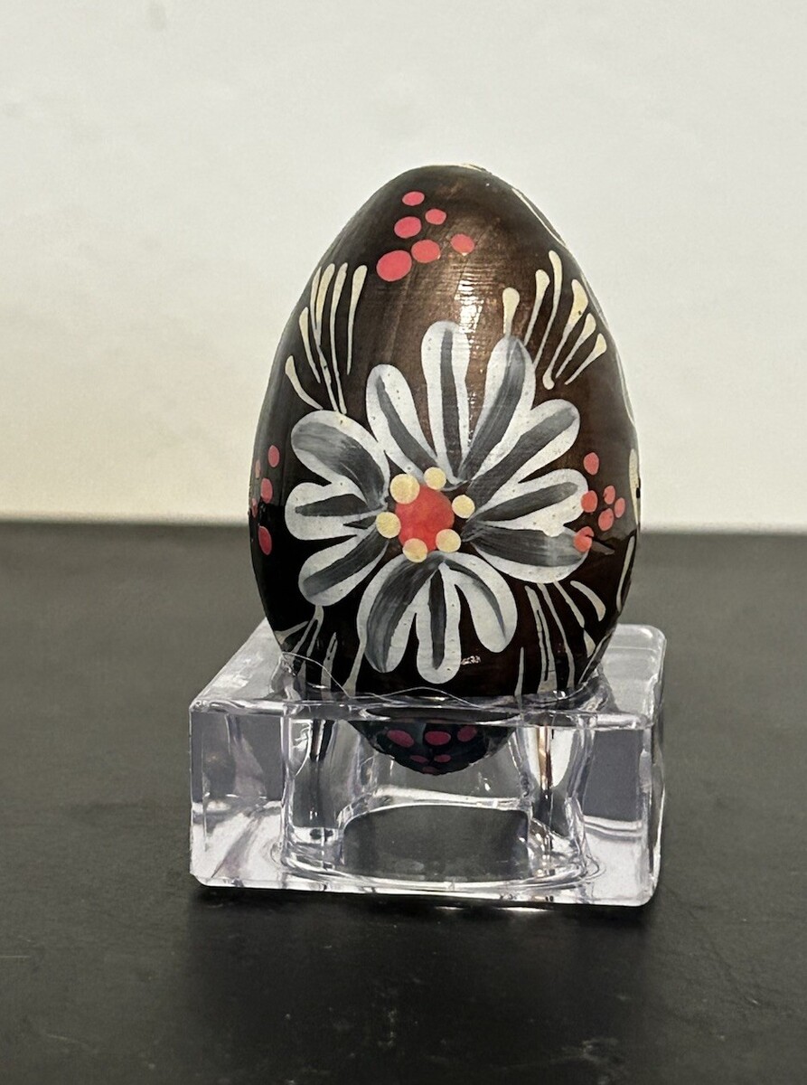 Hand Painted Easter Egg Ornament. Ukrainian/Russian? w/o Stand 2.25”